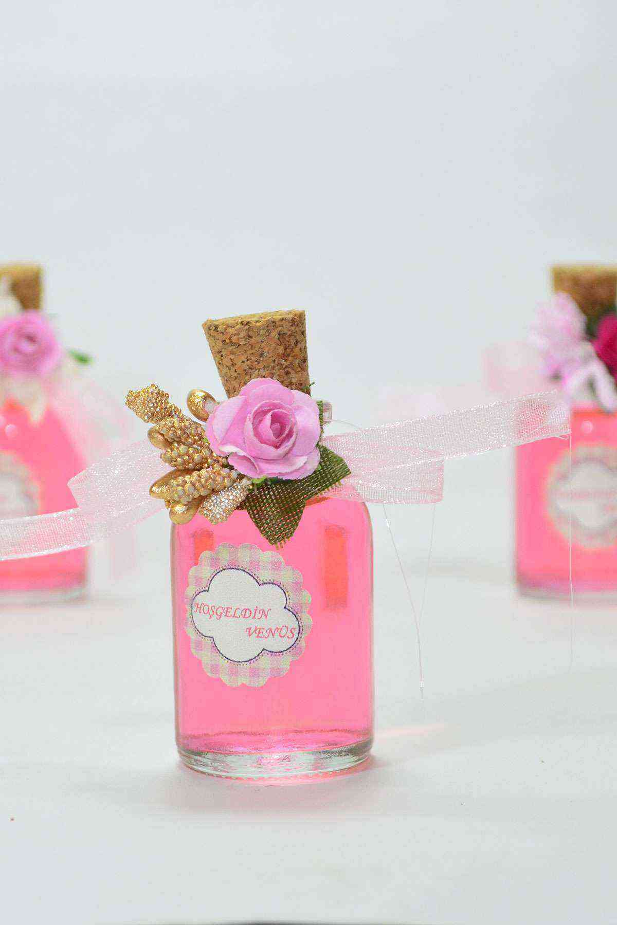 50 Adet İpli İncili Hediyelik Kolonya Şişesi, Nikah Şekeri, Bebek Şekeri - PEMBE