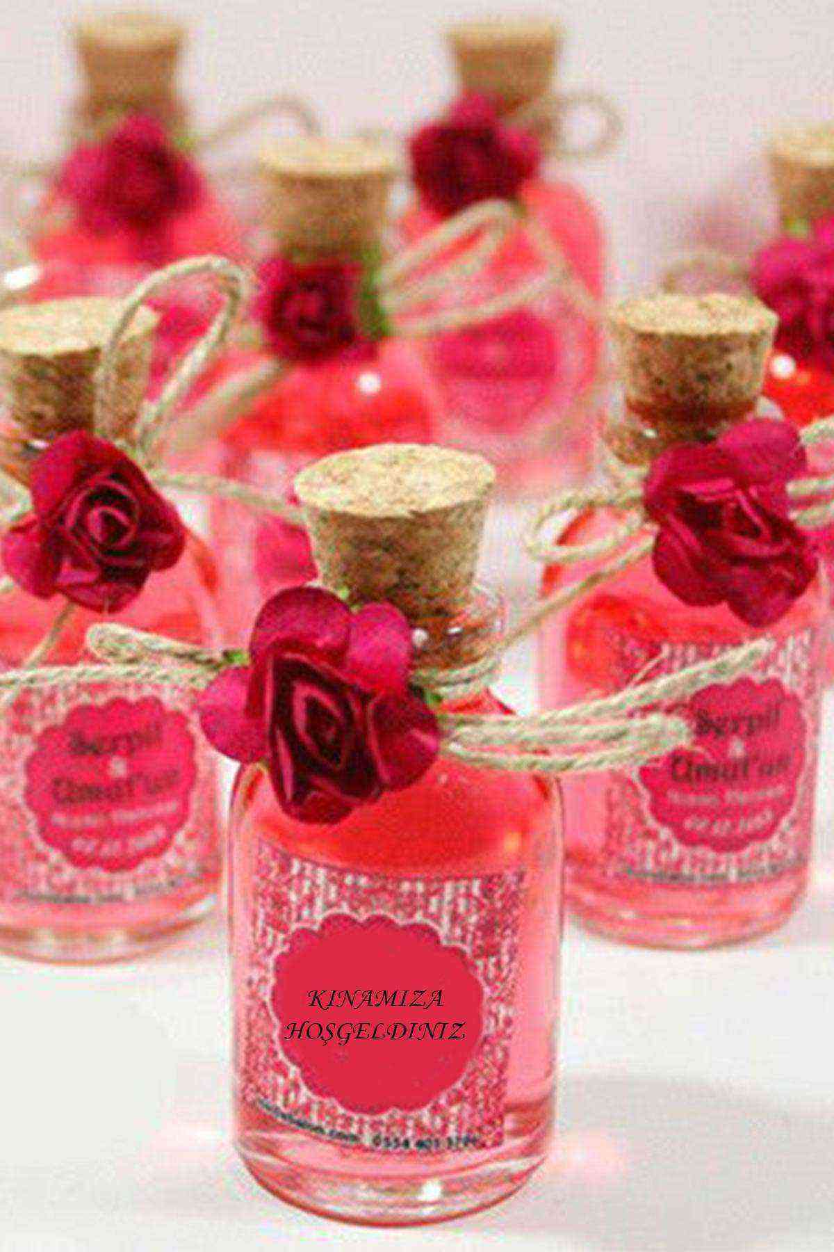 25 Adet Çiçekli Hediyelik Kolonya Şişesi, Nikah Şekeri, Bebek Şekeri - KIRMIZI