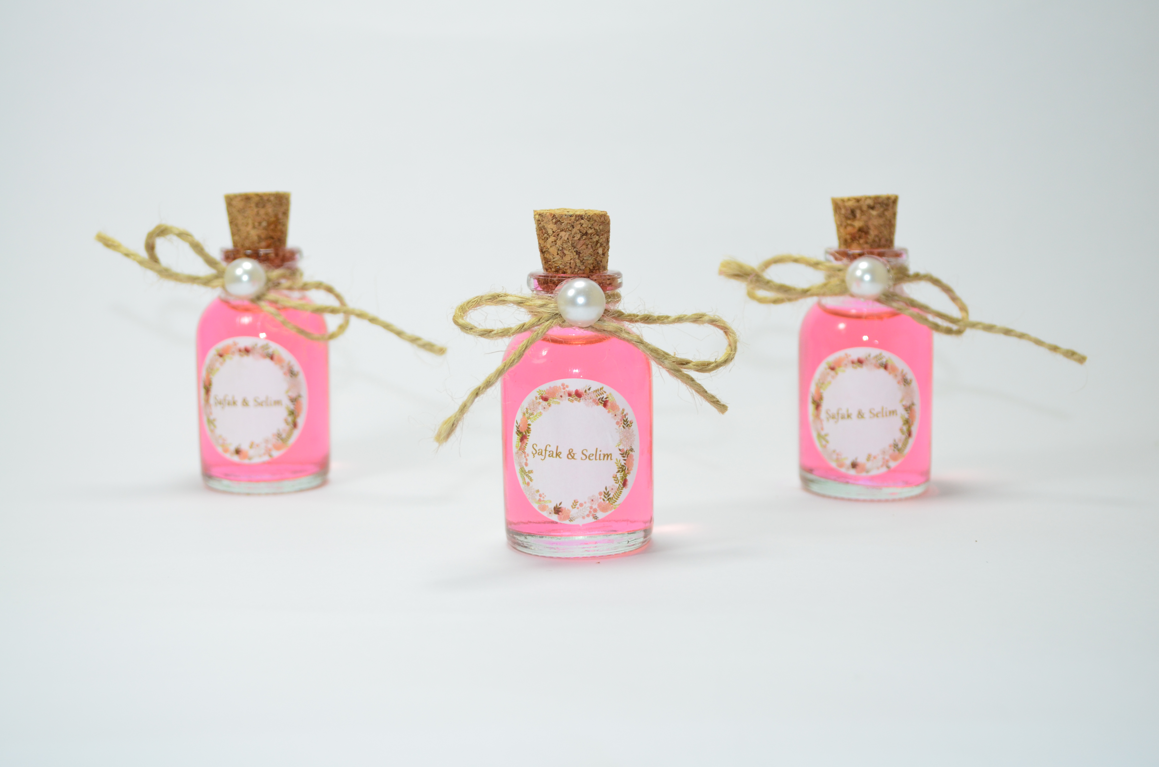 25 Adet İpli İncili Hediyelik Kolonya Şişesi, Nikah Şekeri, Bebek Şekeri - PEMBE