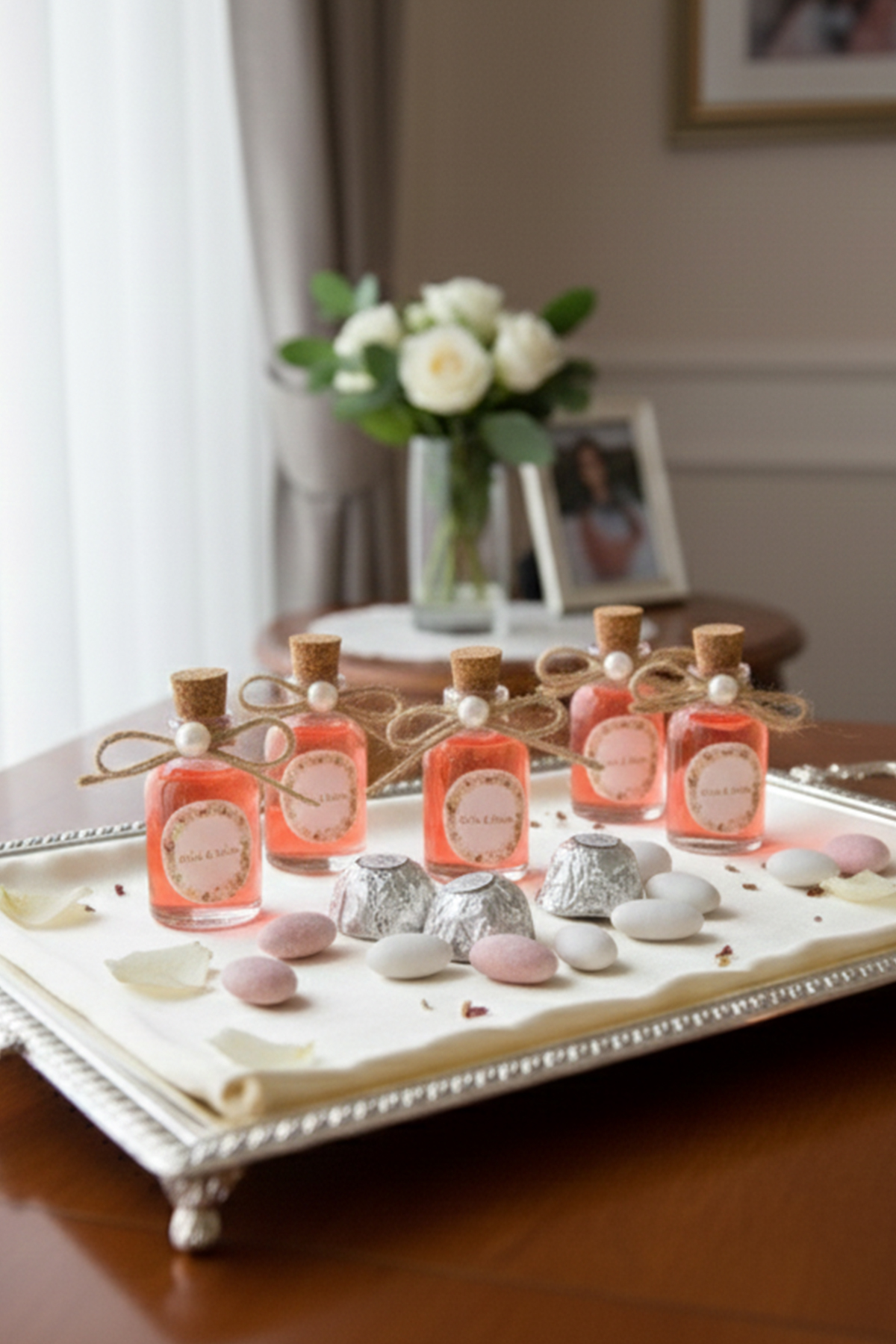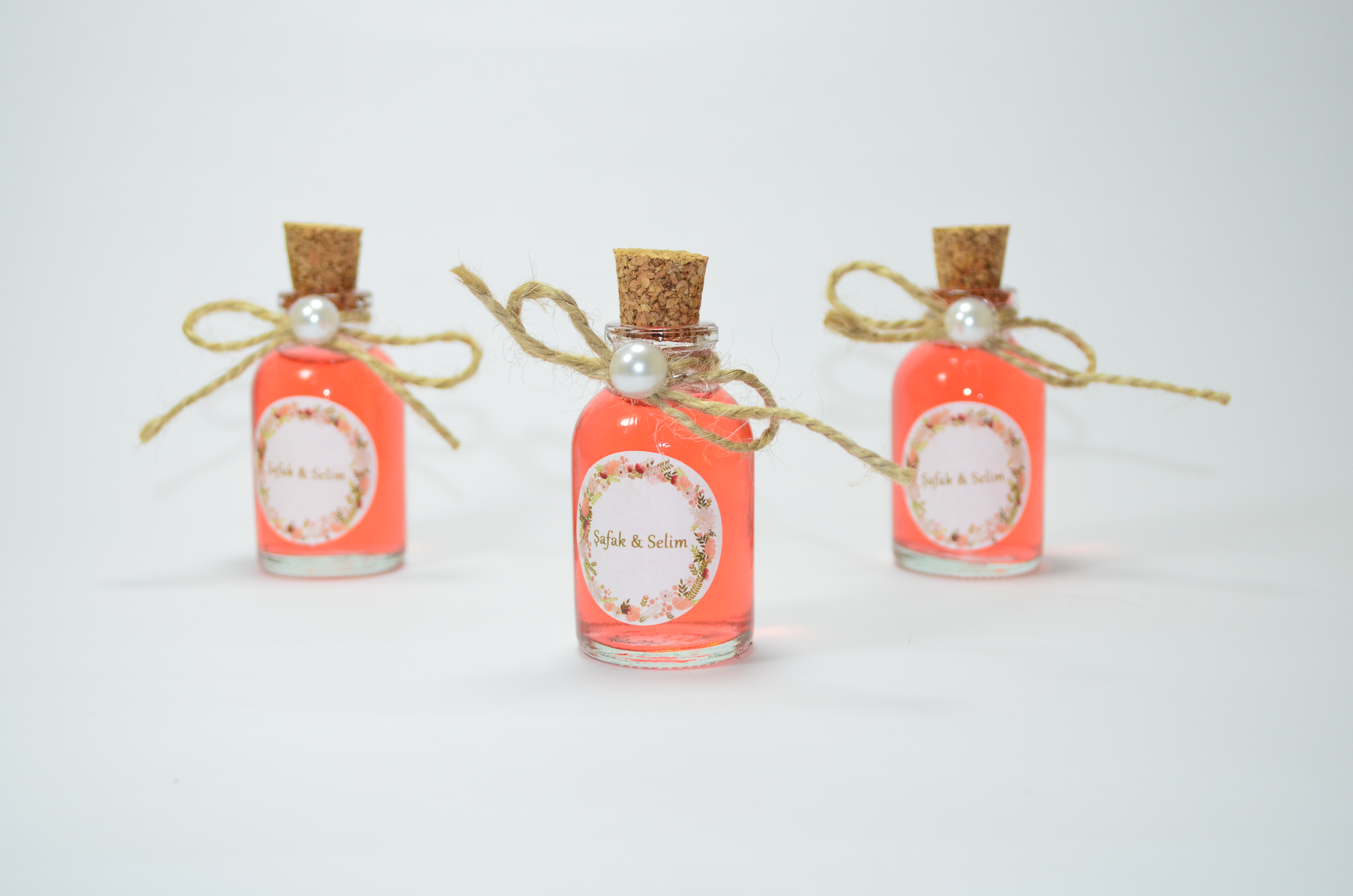 50 Adet İpli İncili Hediyelik Kolonya Şişesi, Nikah Şekeri, Bebek Şekeri - KIRMIZI