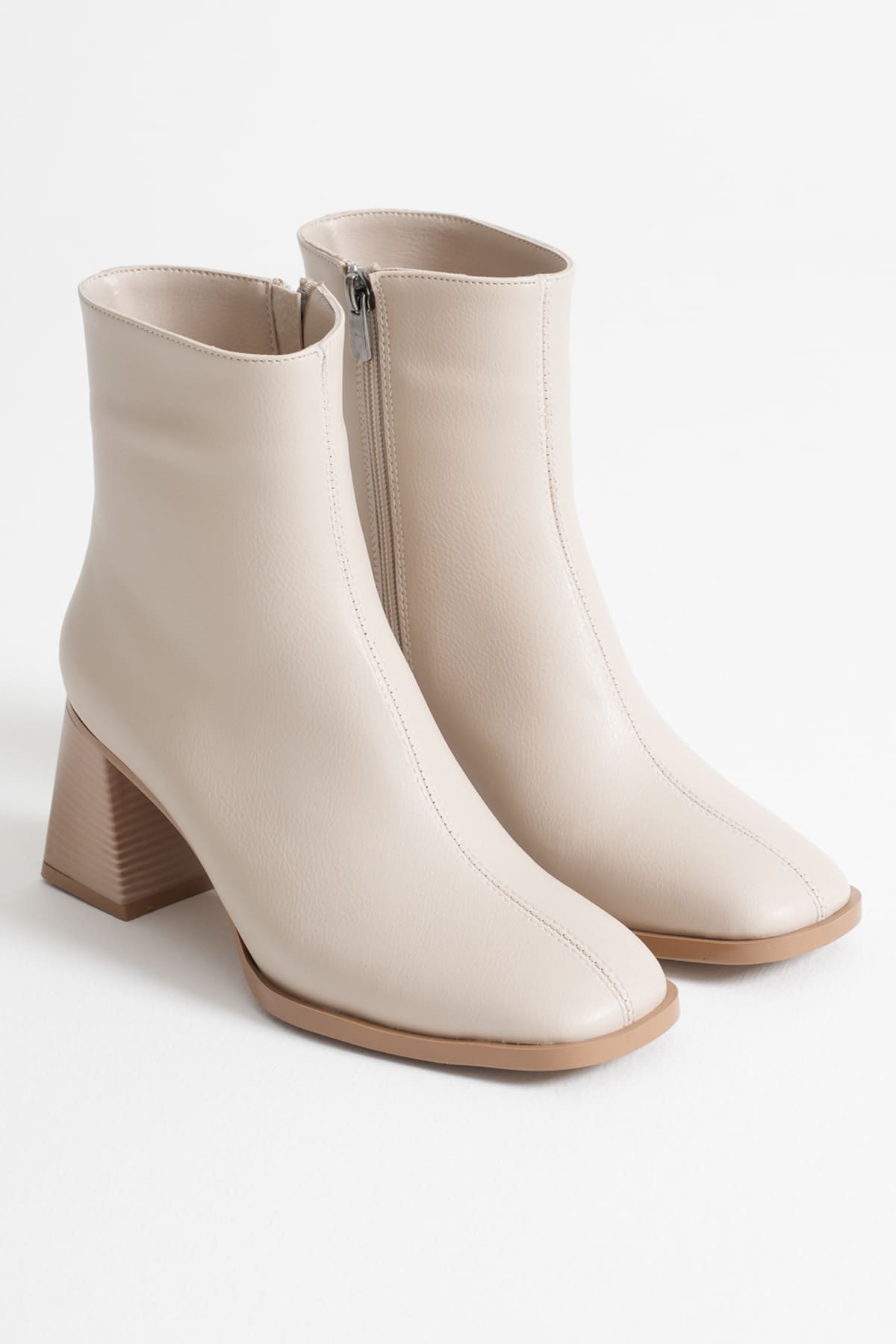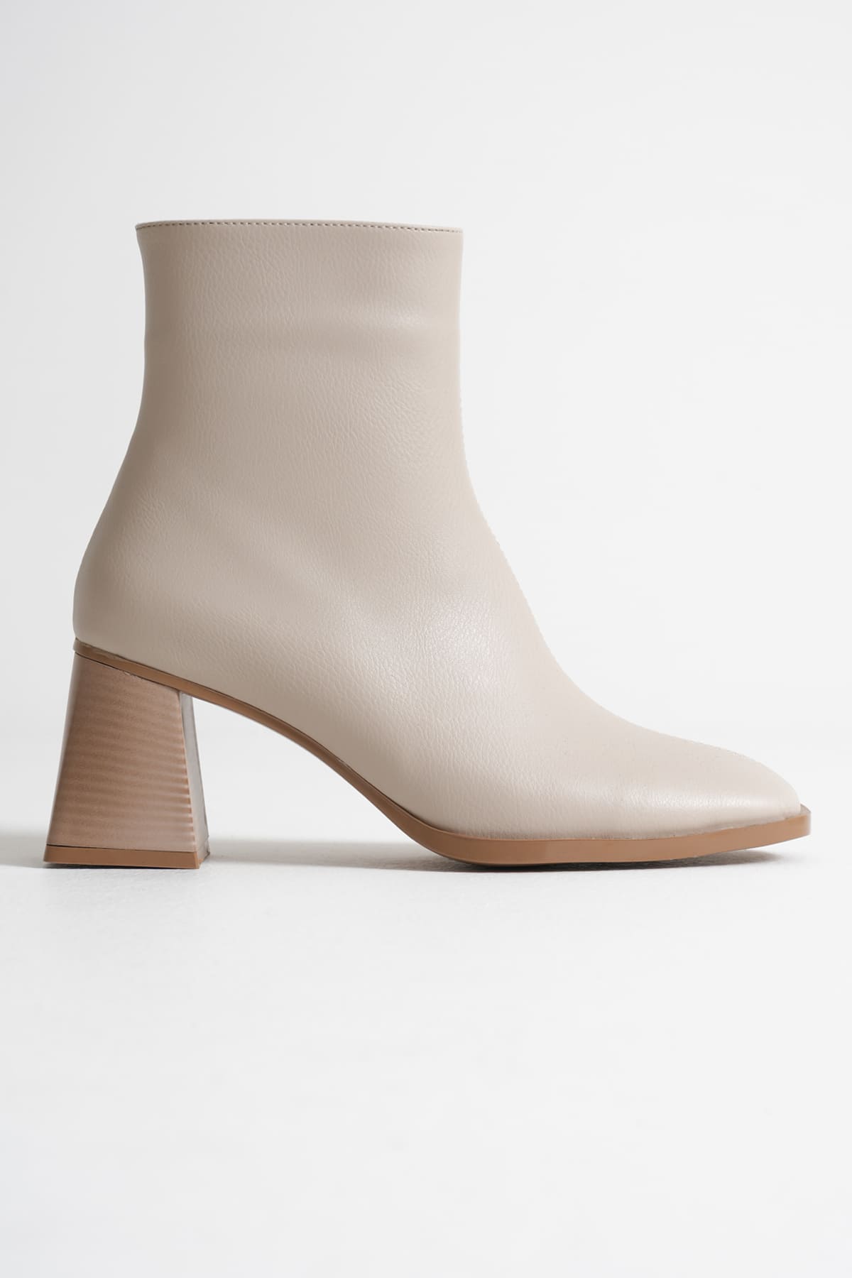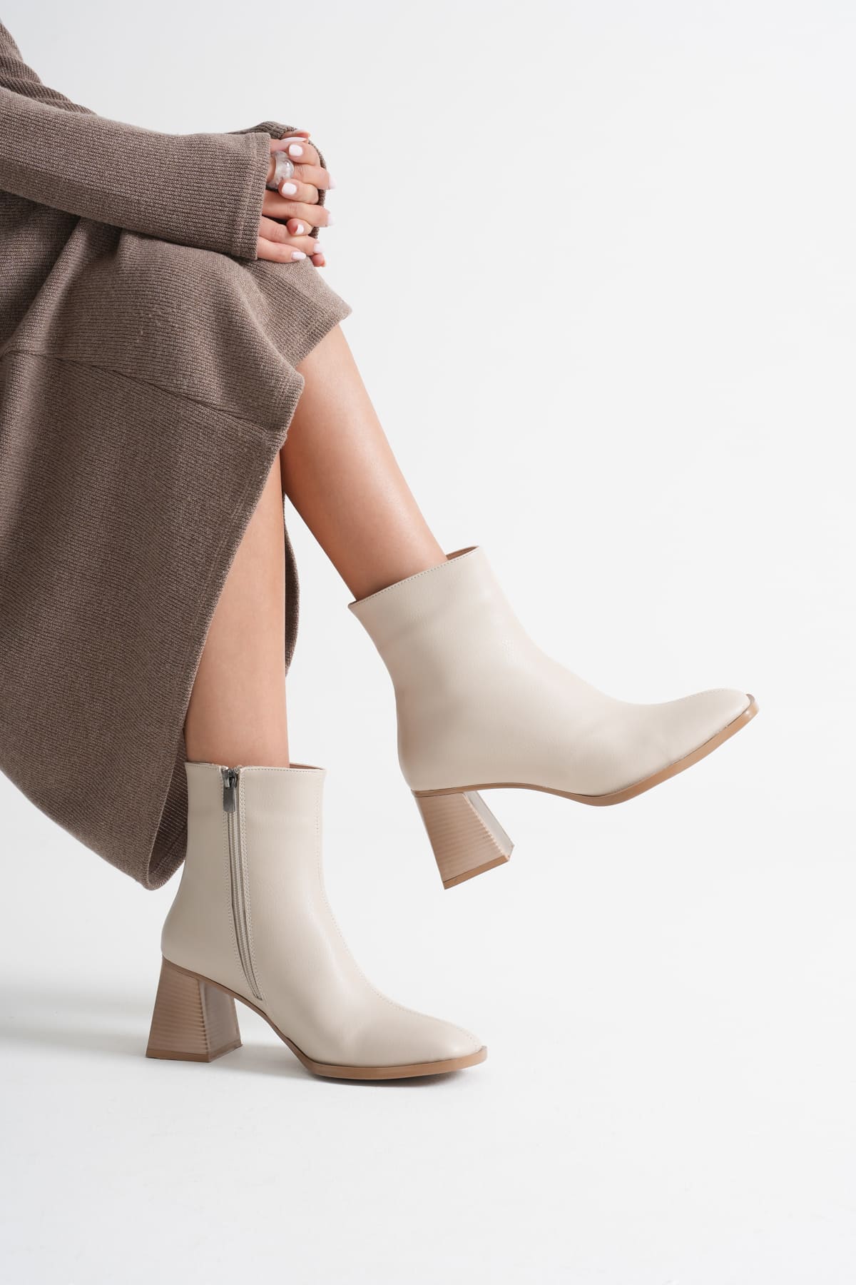 New Noemi Kadın Yüksek Topuklu Krem Deri Bot