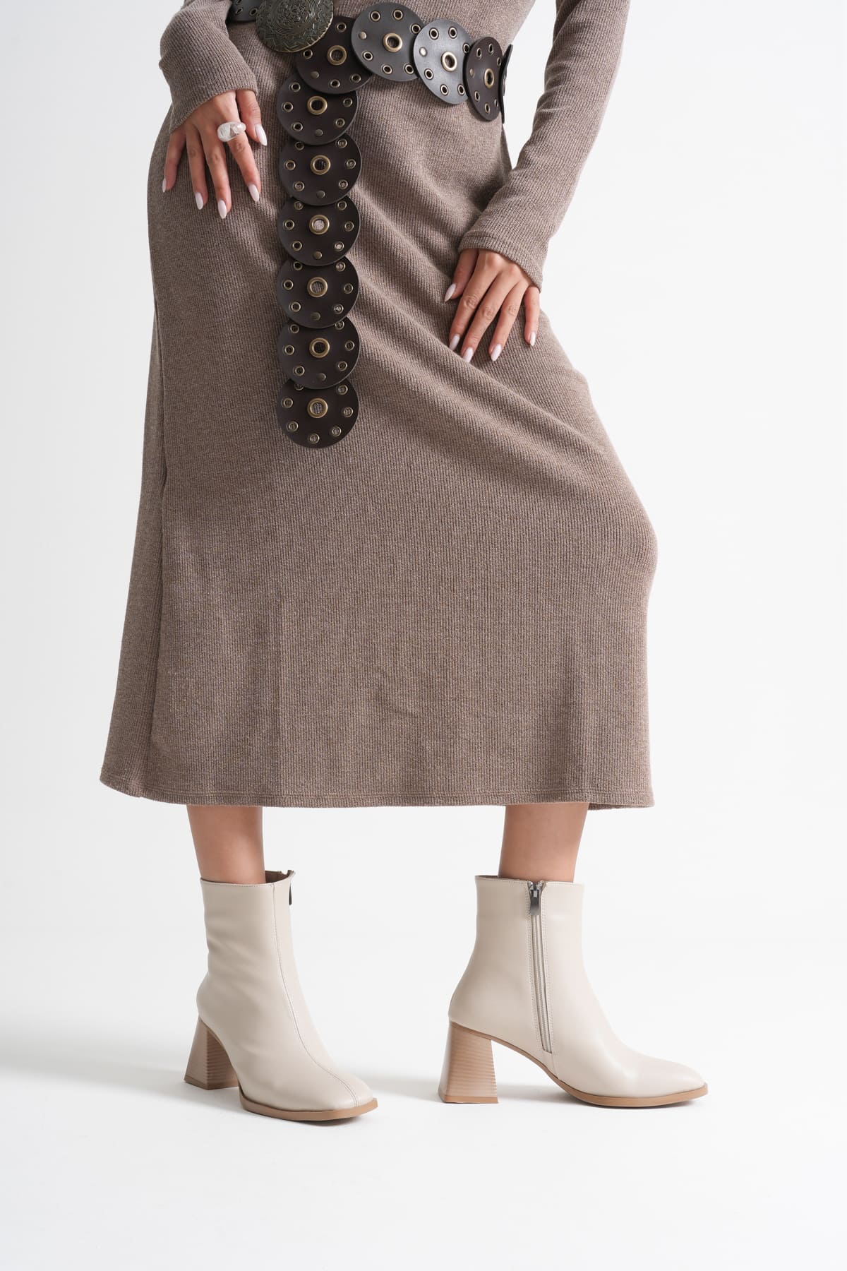 Epolenep Kadın Kışlık Bej Kalın Topuklu Bot