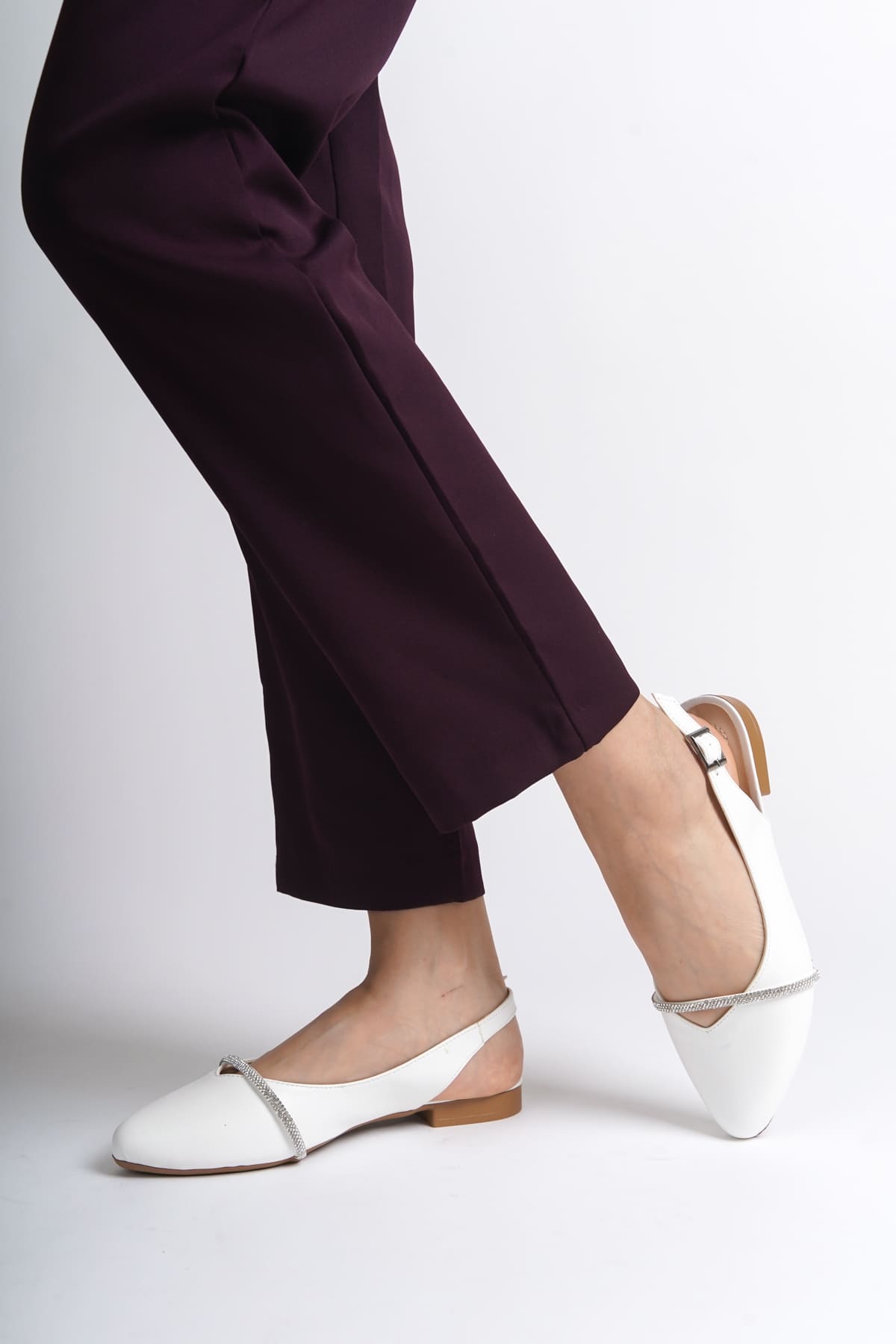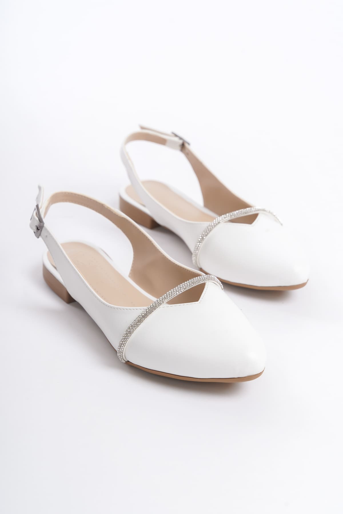 ALLISON Tokalı Ortopedik Rahat Taban Taş Detaylı Kadın Babet Ayakkabı KT Beyaz