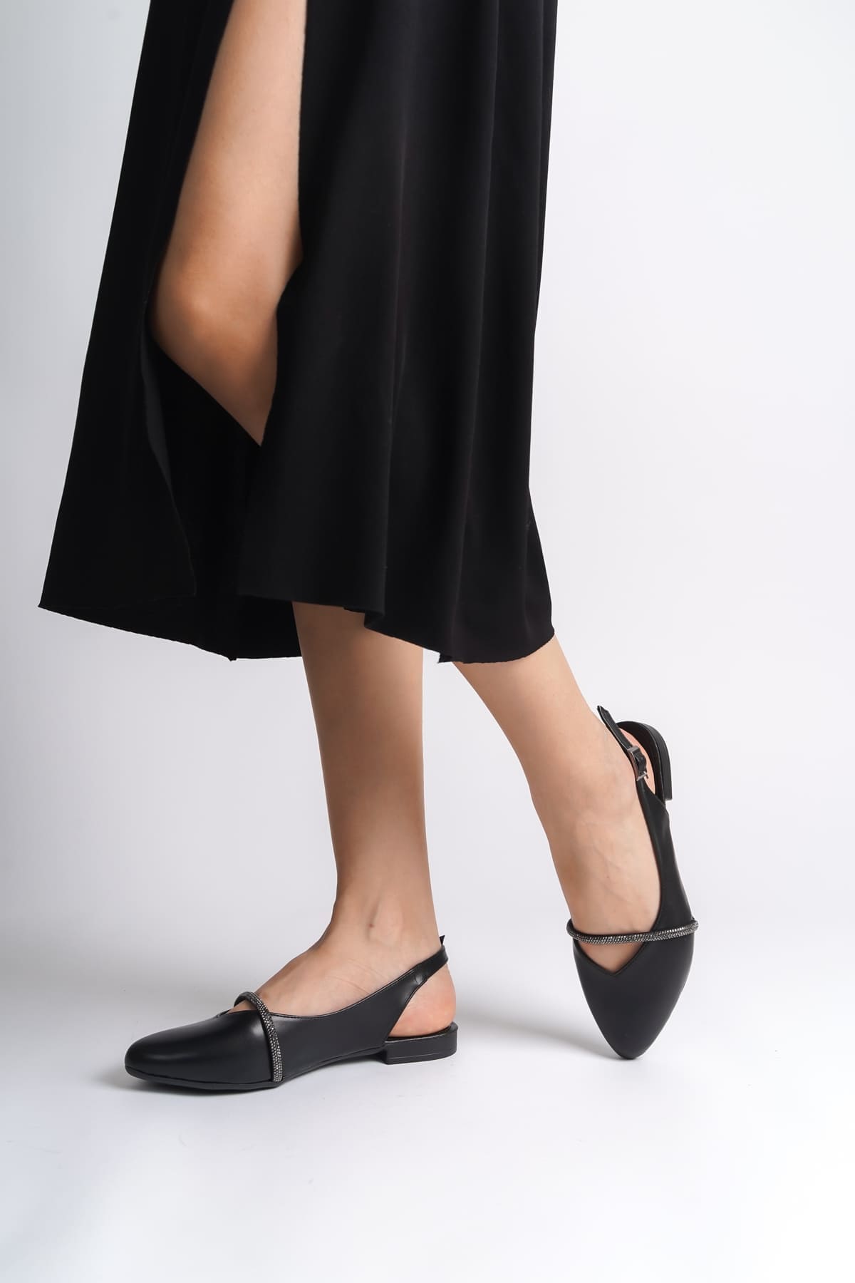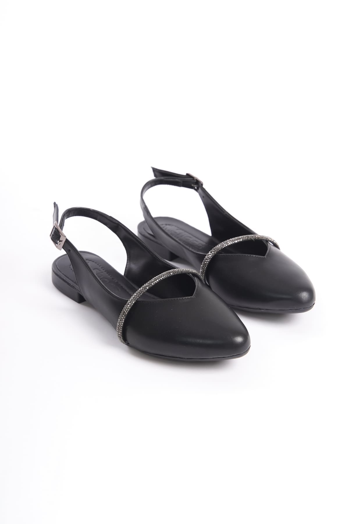 ALLISON Tokalı Ortopedik Rahat Taban Taş Detaylı Kadın Babet Ayakkabı ST Siyah