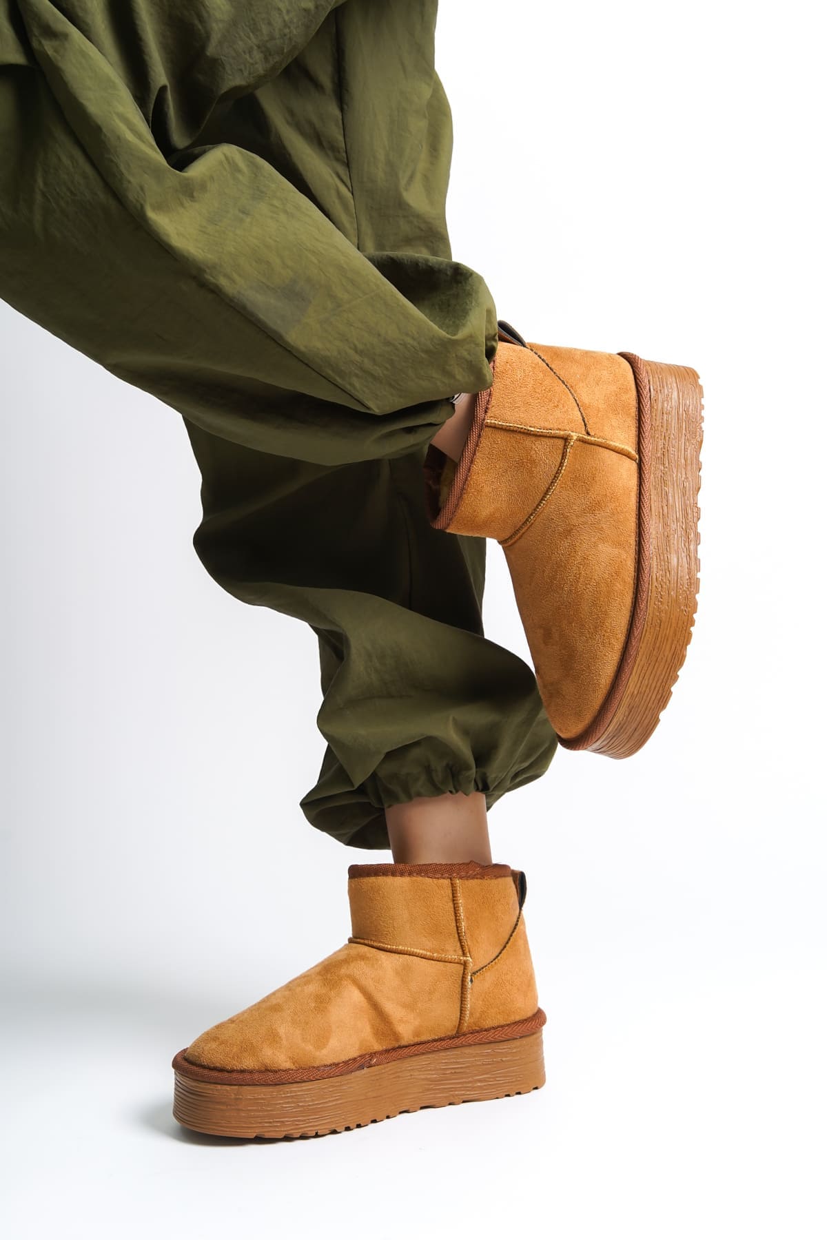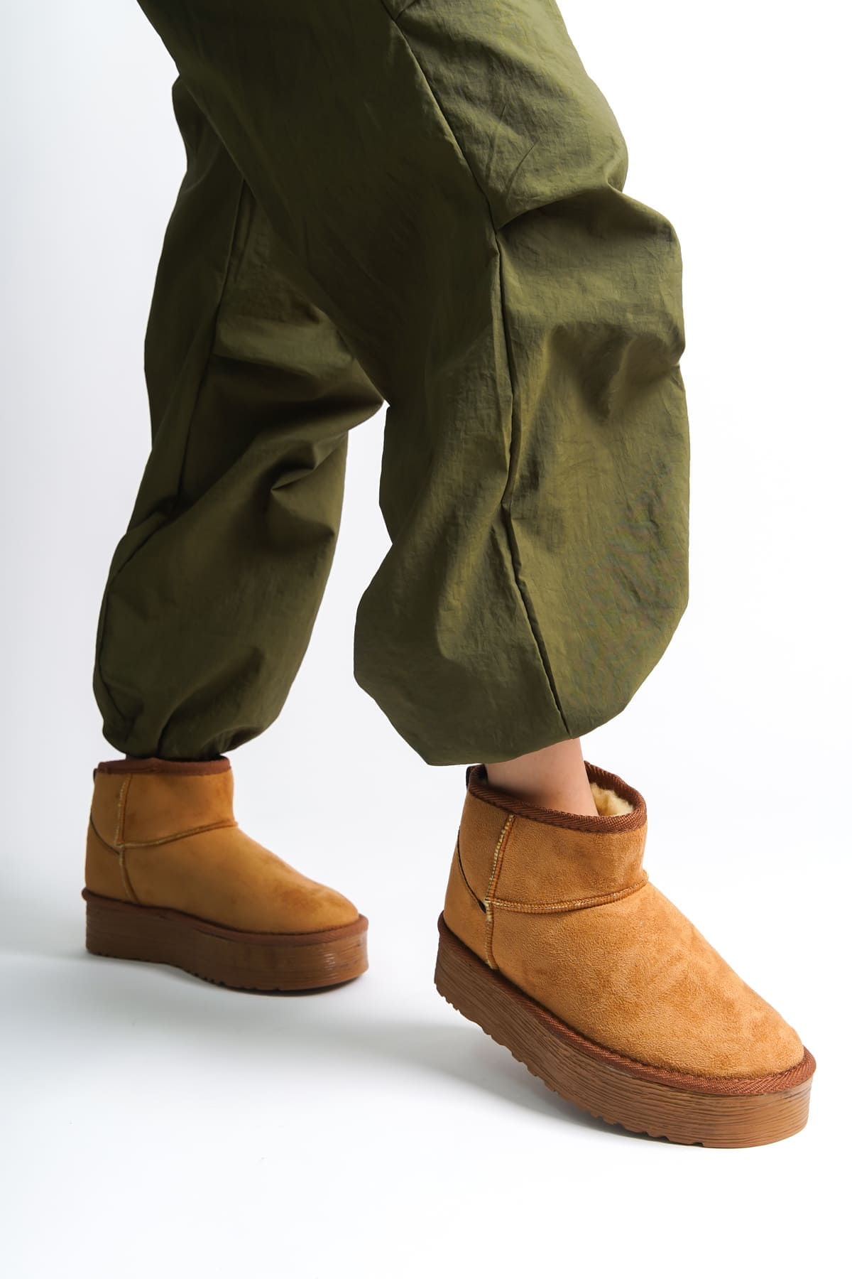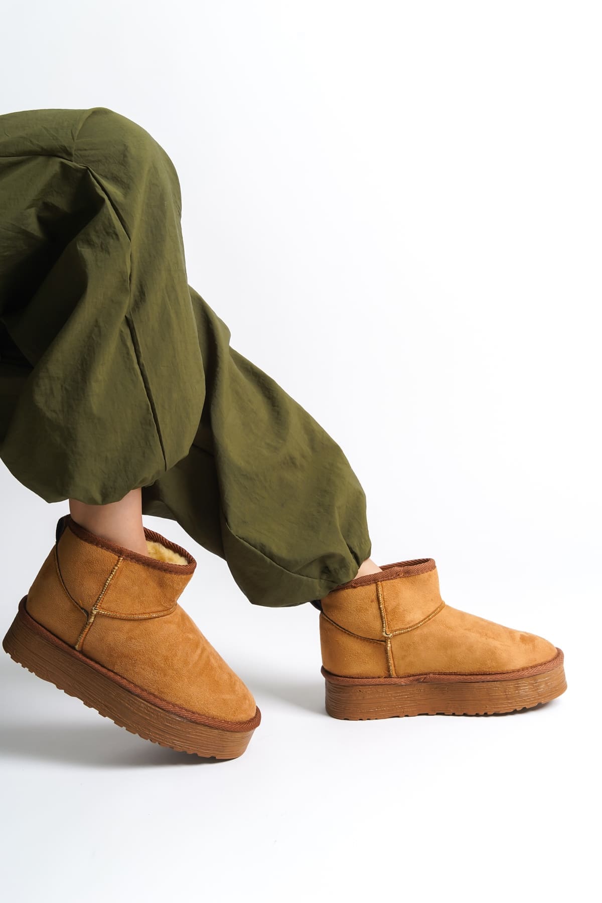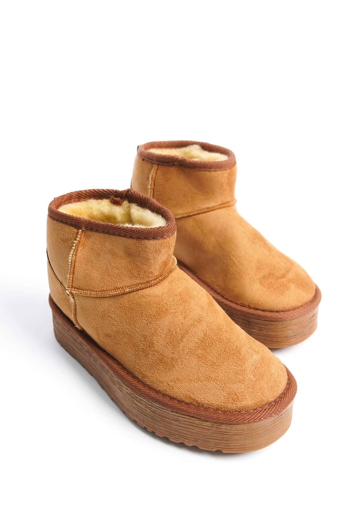 AMELİA Bağcıksız Düz ve Kalın Taban İçi Kürklü Kısa Süet Kadın Bot TT Taba
