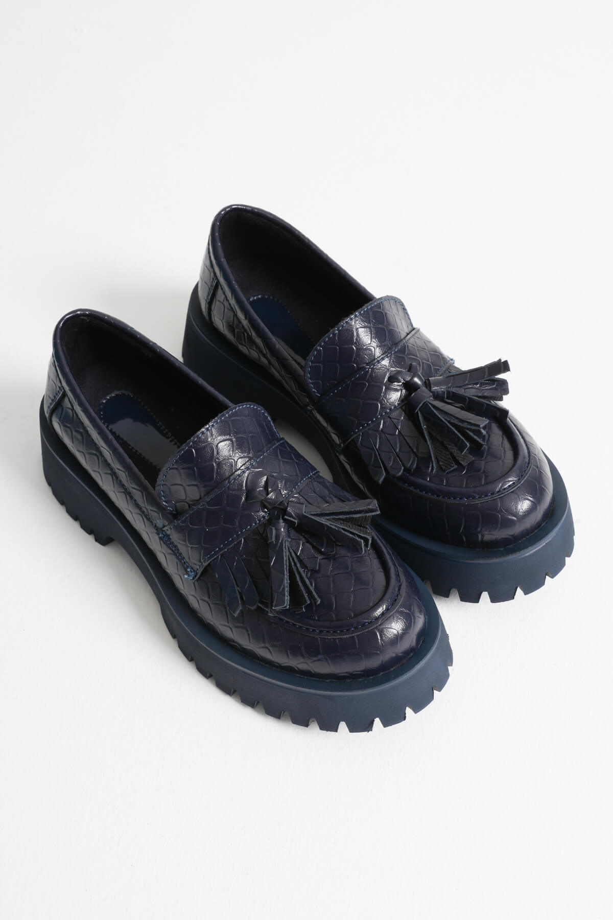 Rion Kadın Günlük Lacivert Kroko Loafer Ayakkabı