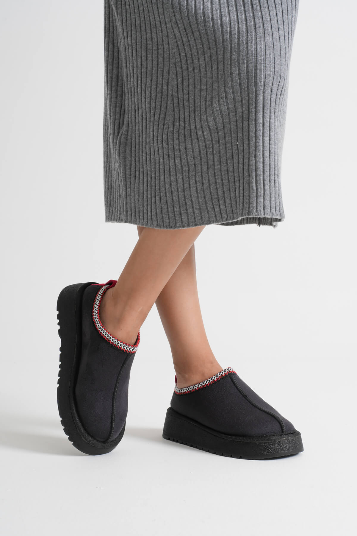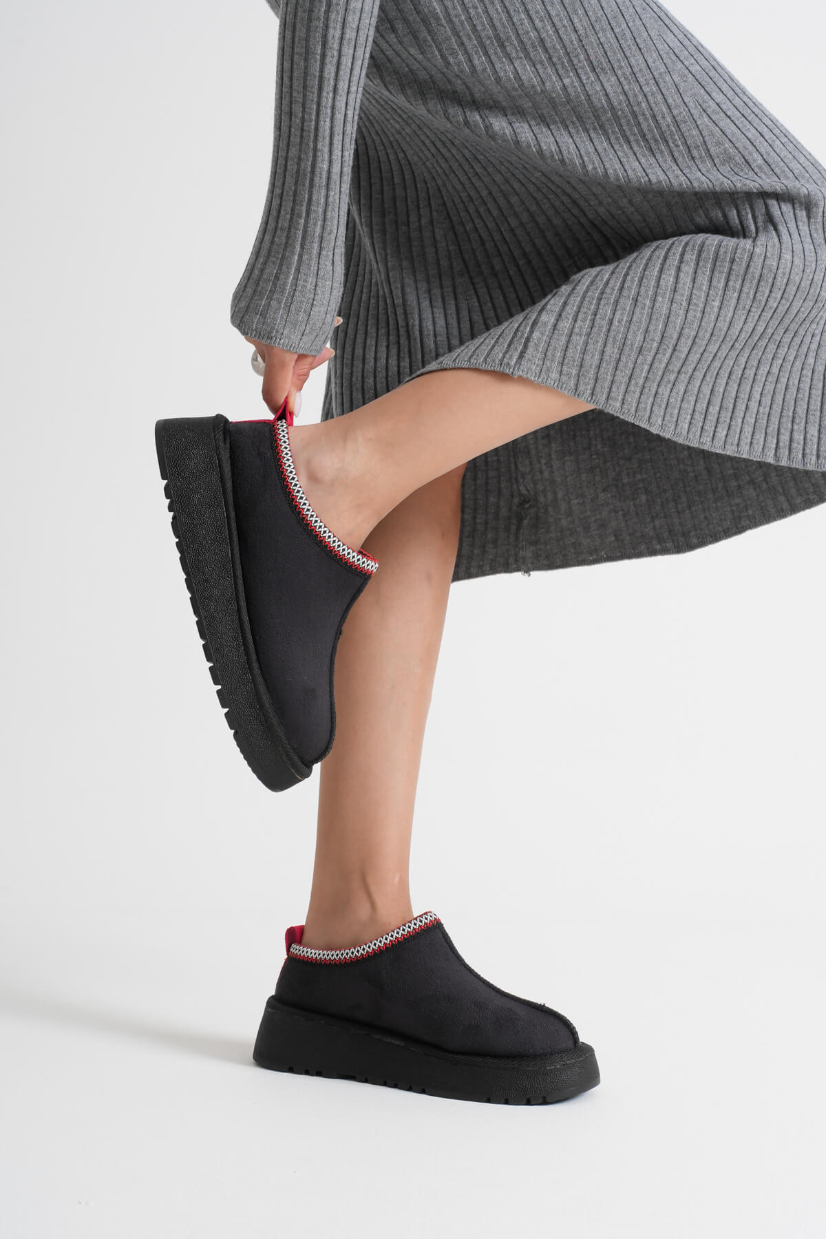 Asle Kadın Siyah Kışlık Kürklü Terlik