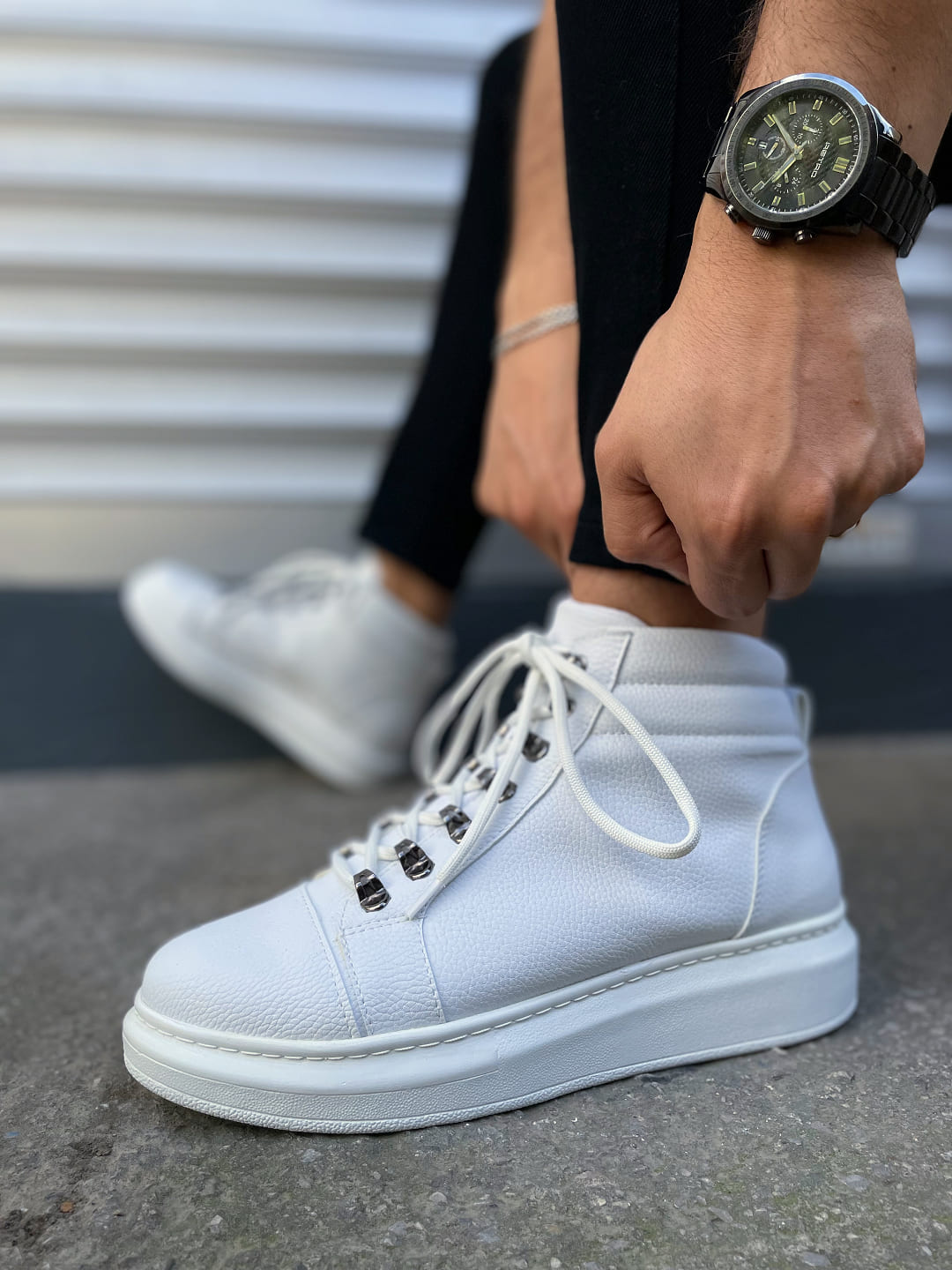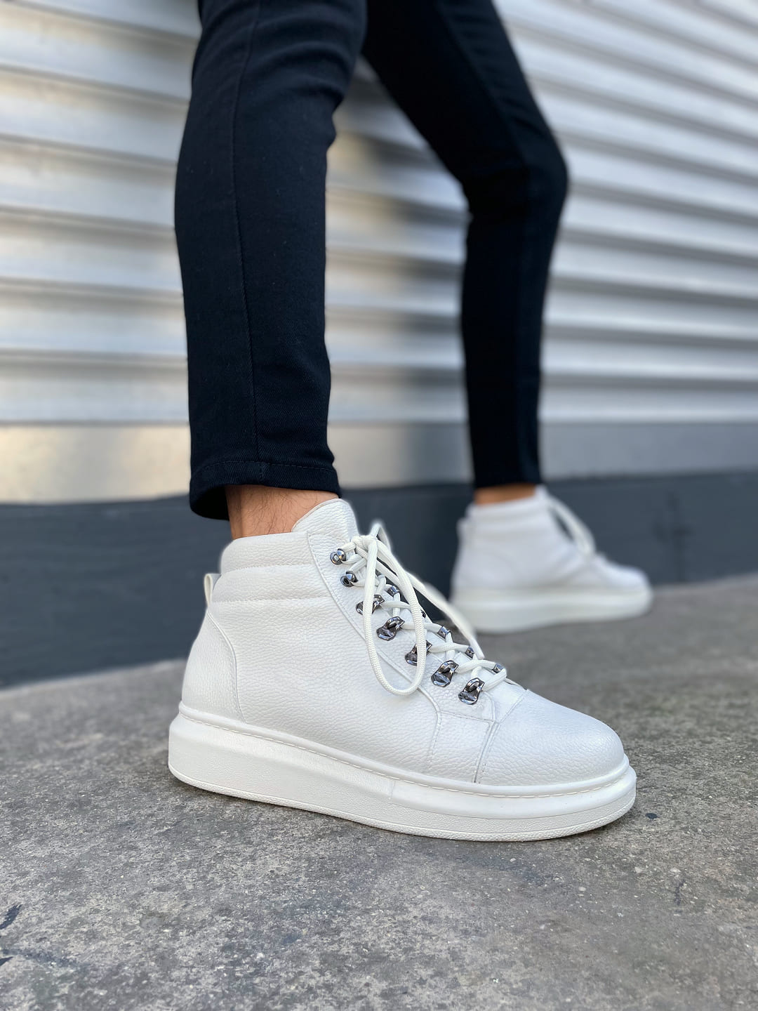 Atto Bağcıklı Ortopedik Taban Cilt Erkek Spor Bot CBT - Beyaz