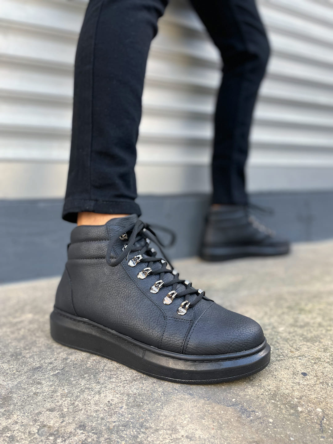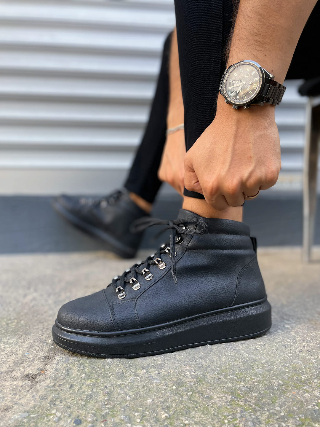Atto Bağcıklı Ortopedik Taban Cilt Erkek Spor Bot CST - Siyah
