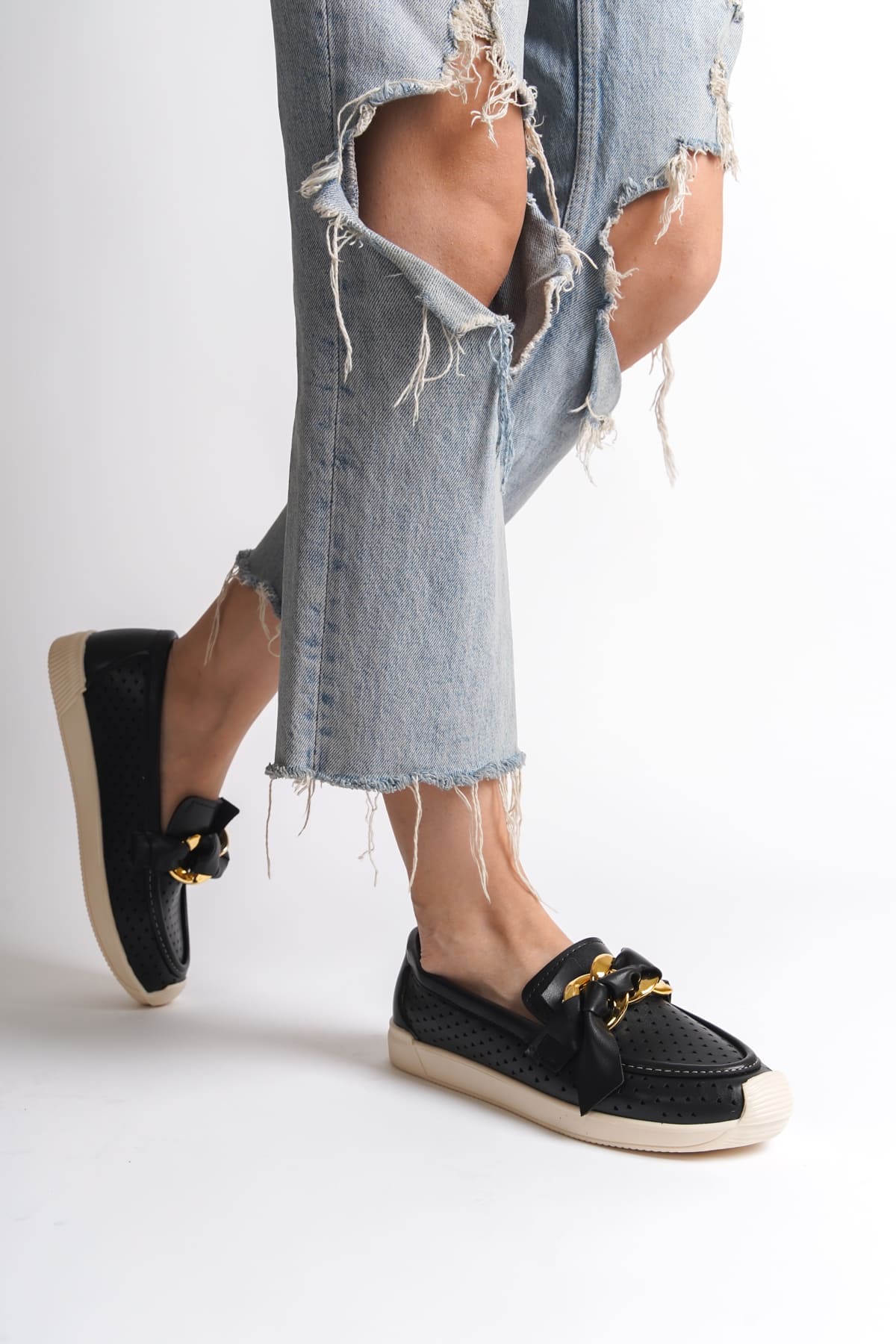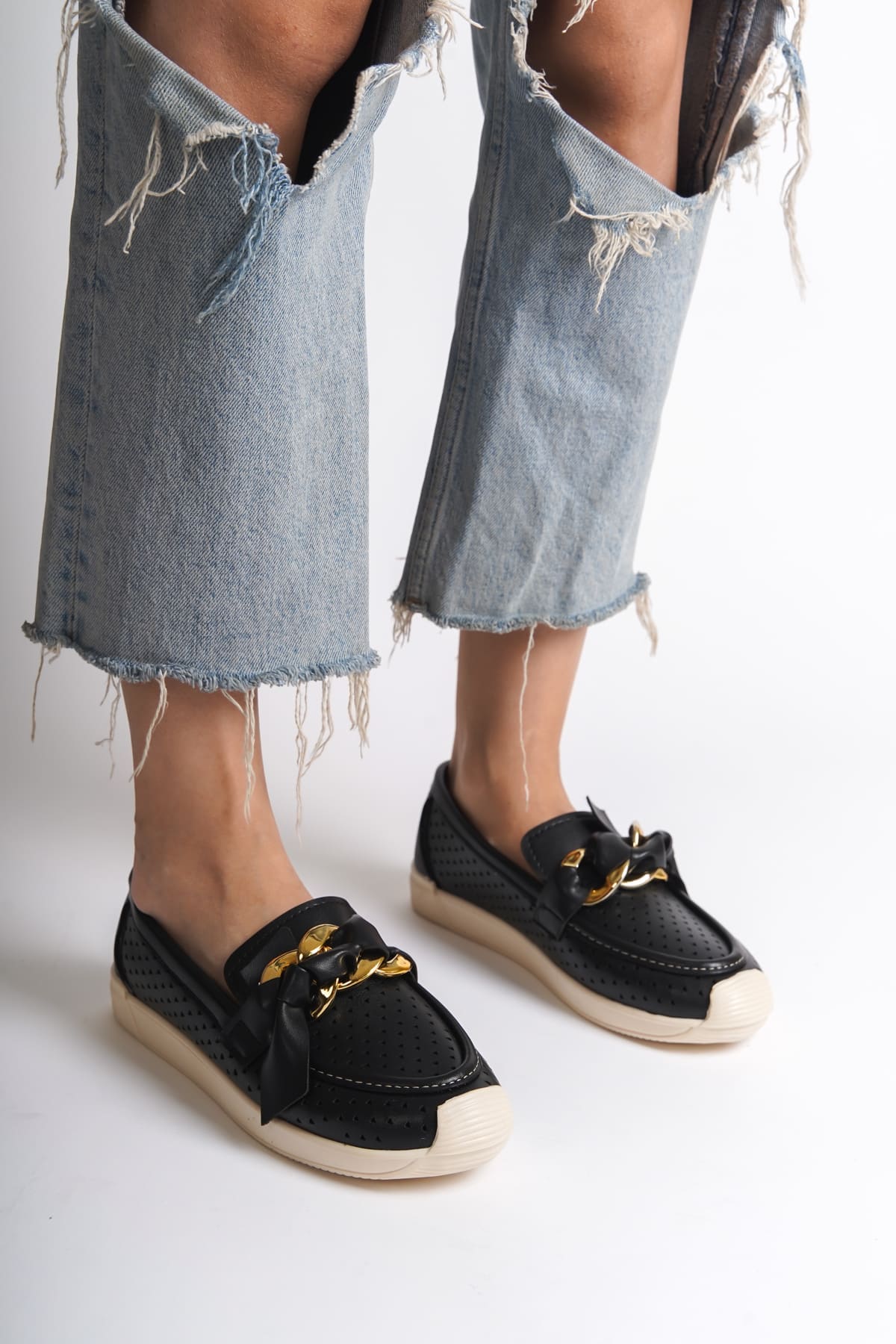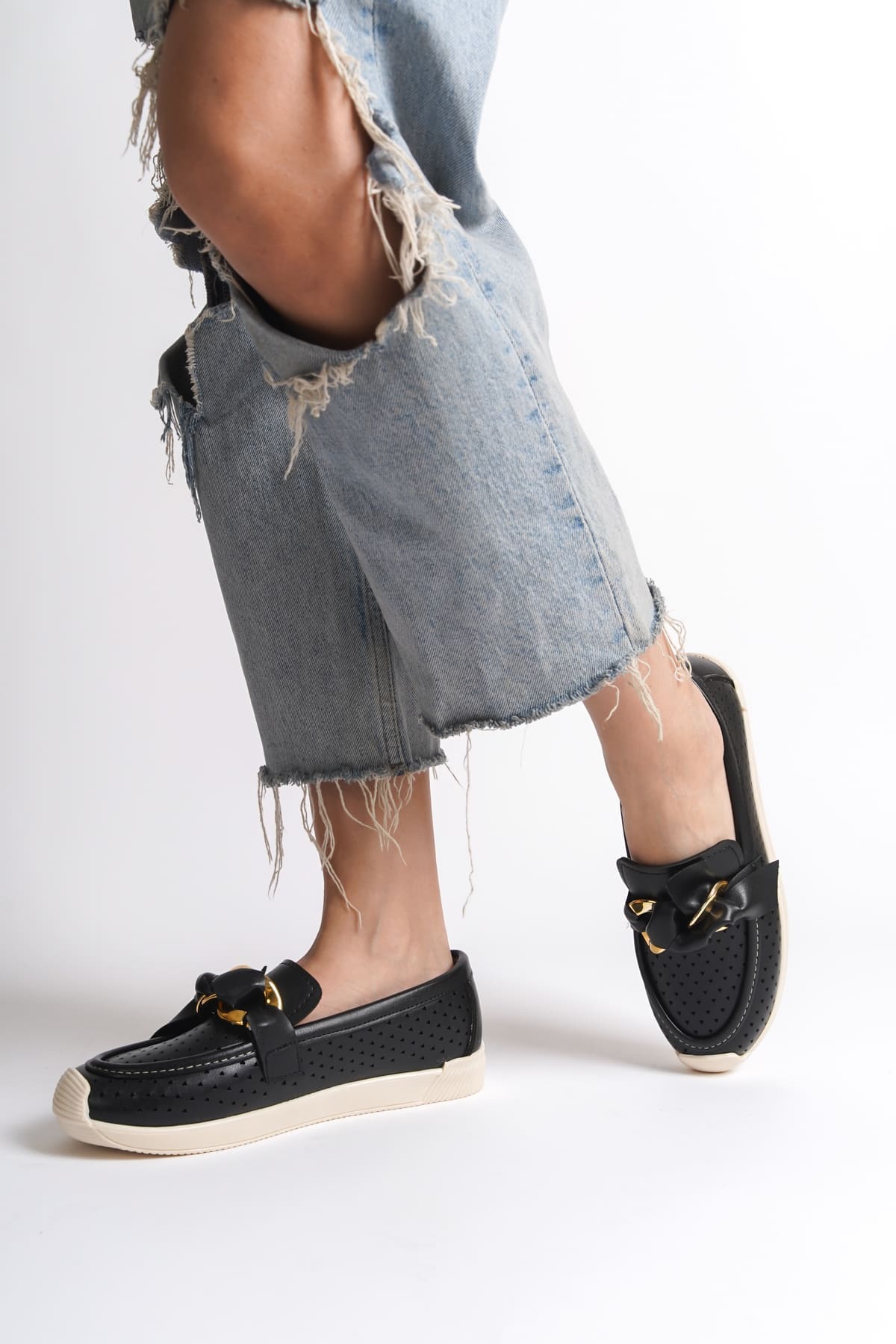Basel Ortopedik Rahat Taban Kalp Desenli Siyah Babet Ayakkabı