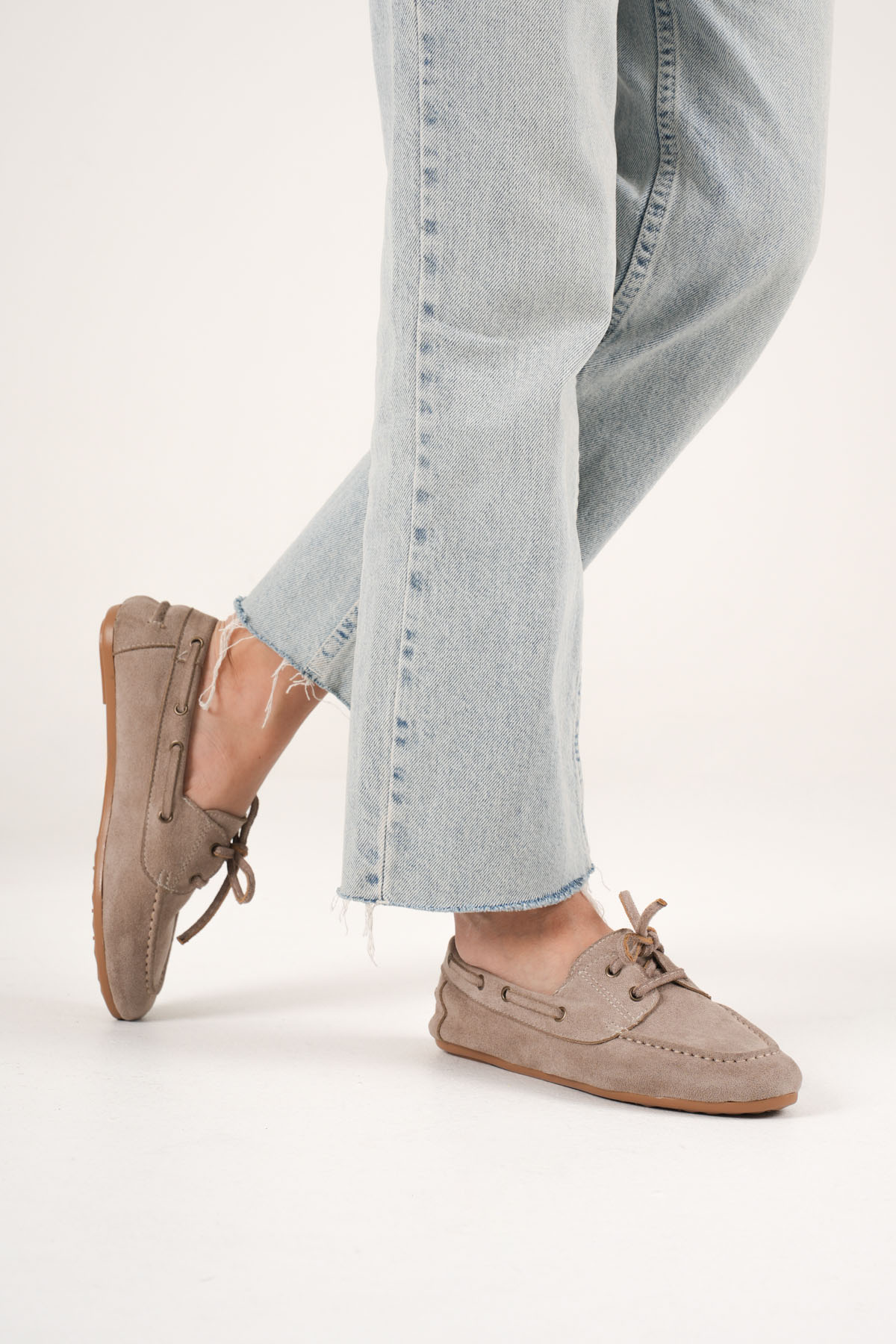 Anim Kadın Günlük Bej Süet Loafer Ayakkabı