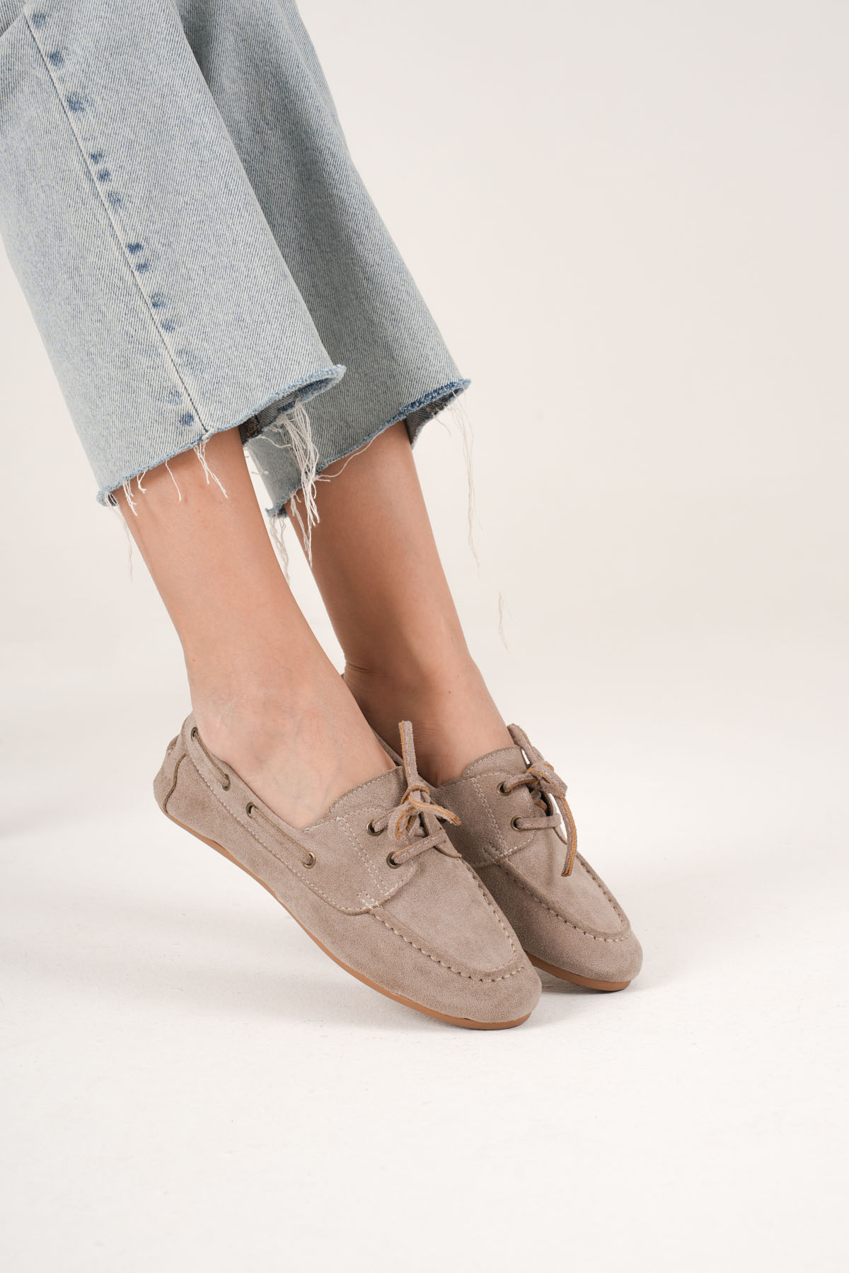 Rion Kadın Günlük Bej Süet Loafer Ayakkabı
