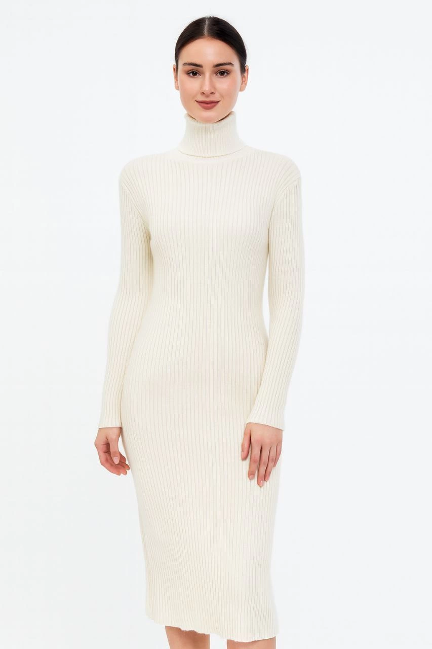 Boğazlı Triko Kadın Elbise - Beyaz -
