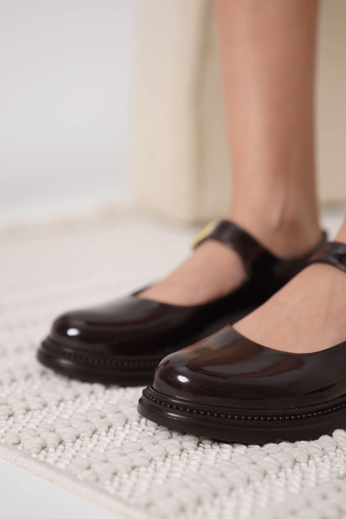 Anairb Acı Kahve Rugan Mary Jane Ayakkabı