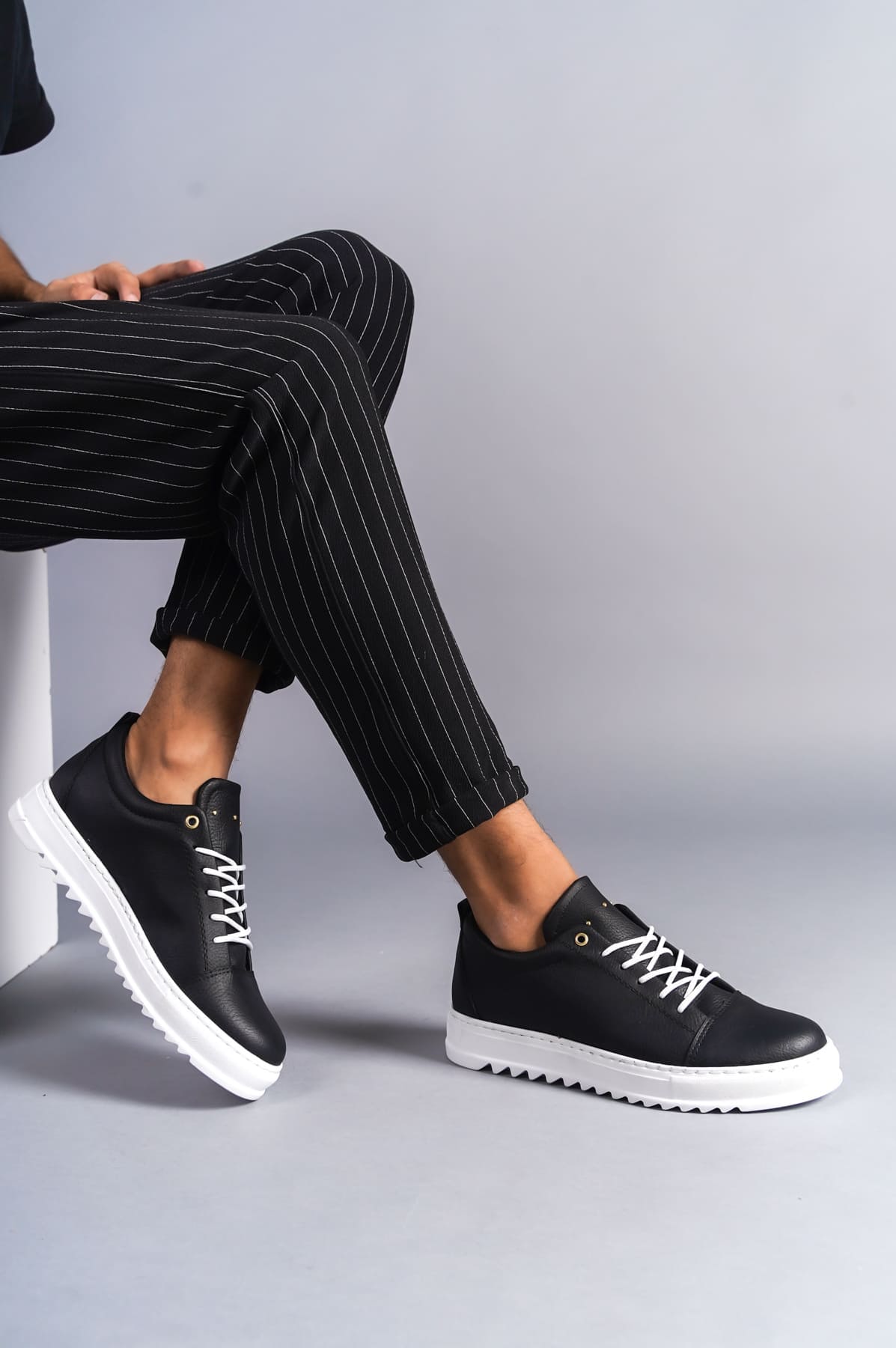 Cool Bağcıklı Cilt Erkek Günlük Spor Klasik Ayakkabı BT Siyah