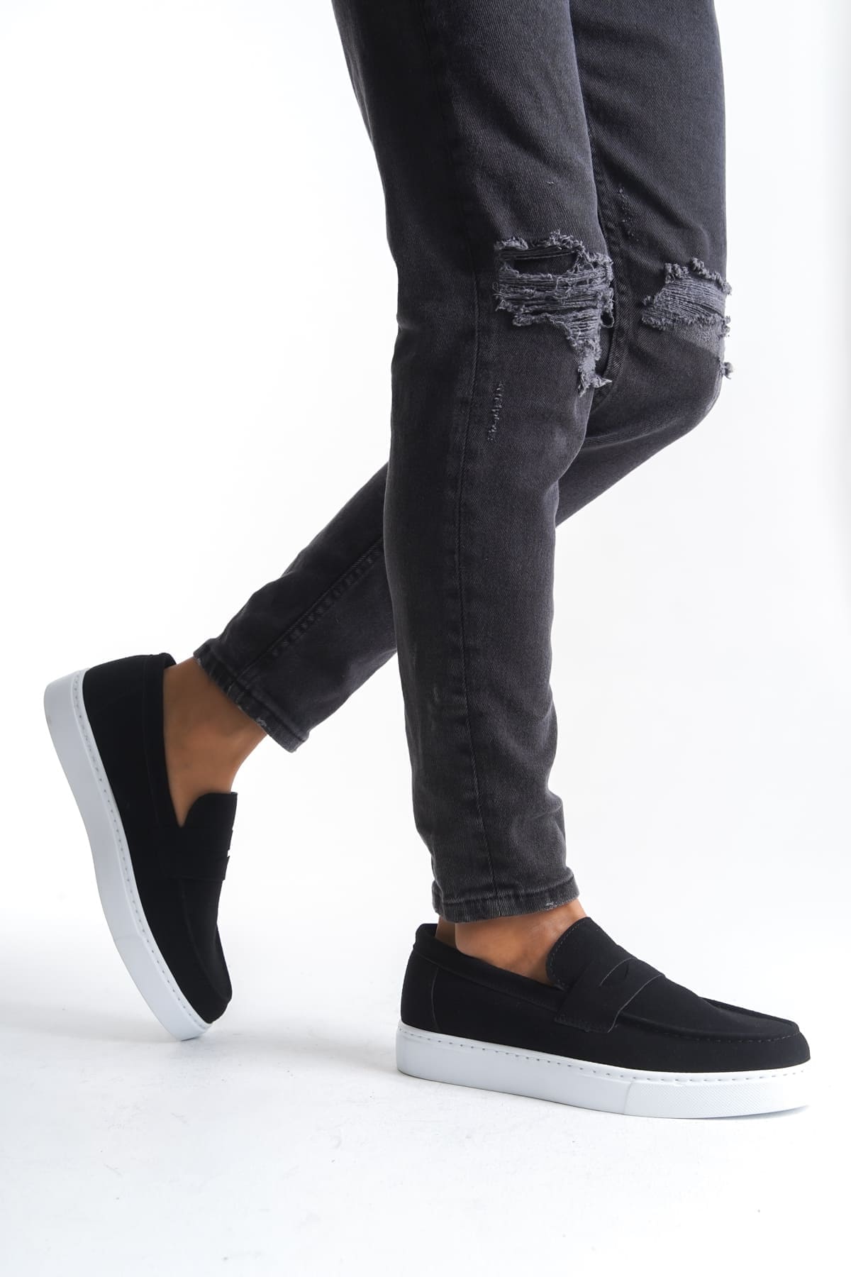 Dorian Estilo Bağcıksız Süet Erkek Günlük Spor Klasik Siyah Beyaz Ayakkabı