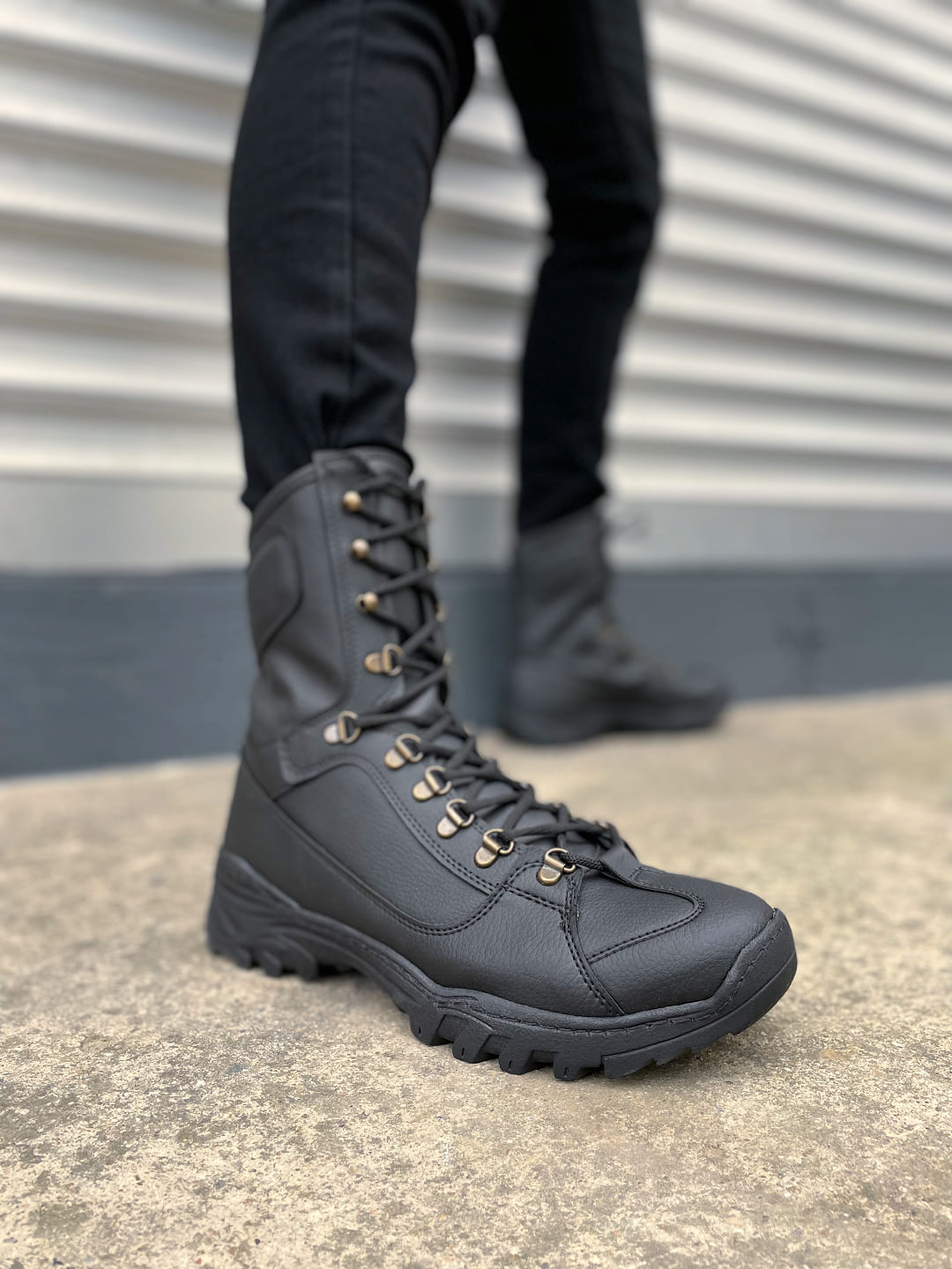 Ekir Bağcıklı Ortopedik Taban Günlük Cilt Erkek Askeri Postal Bot CST Siyah