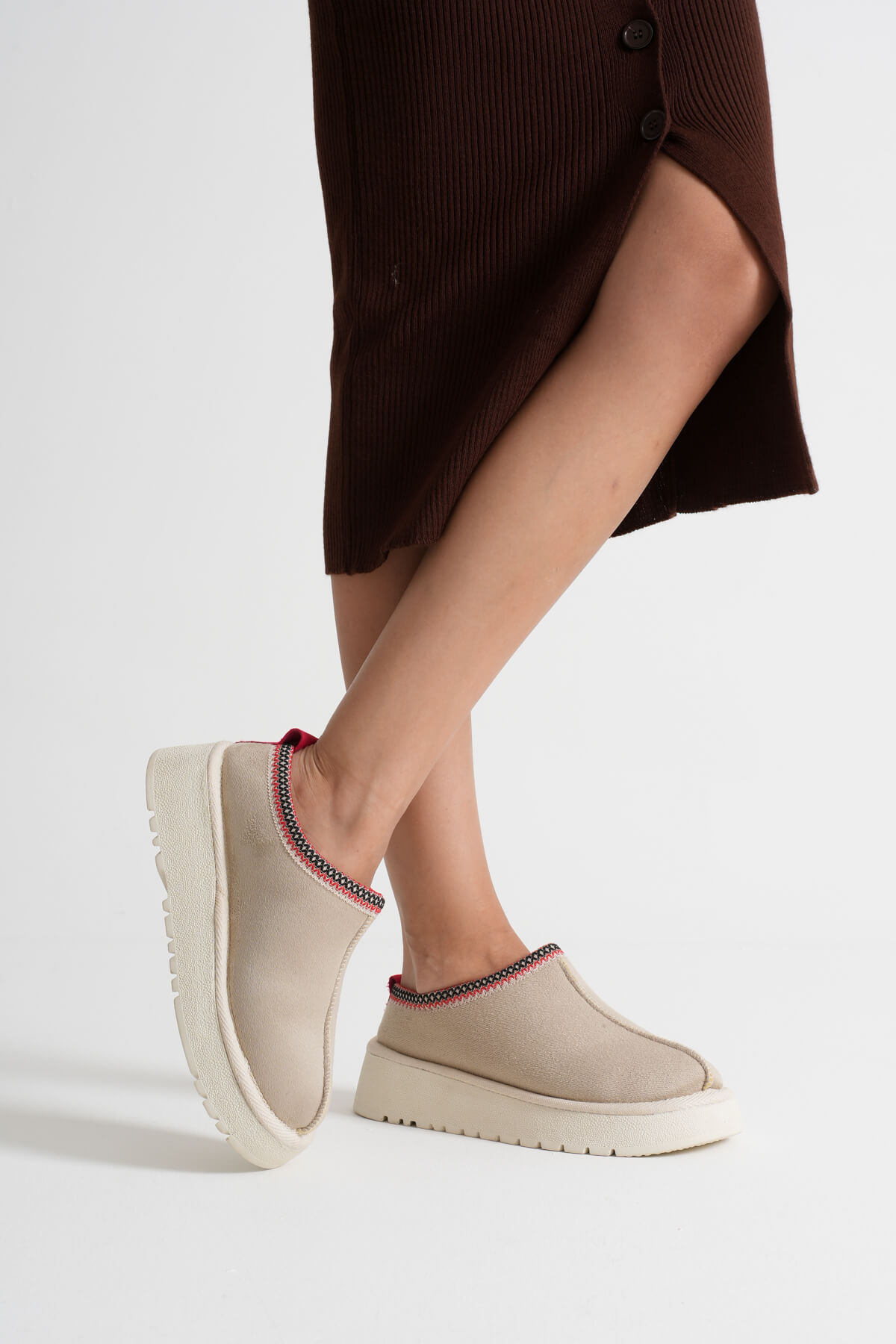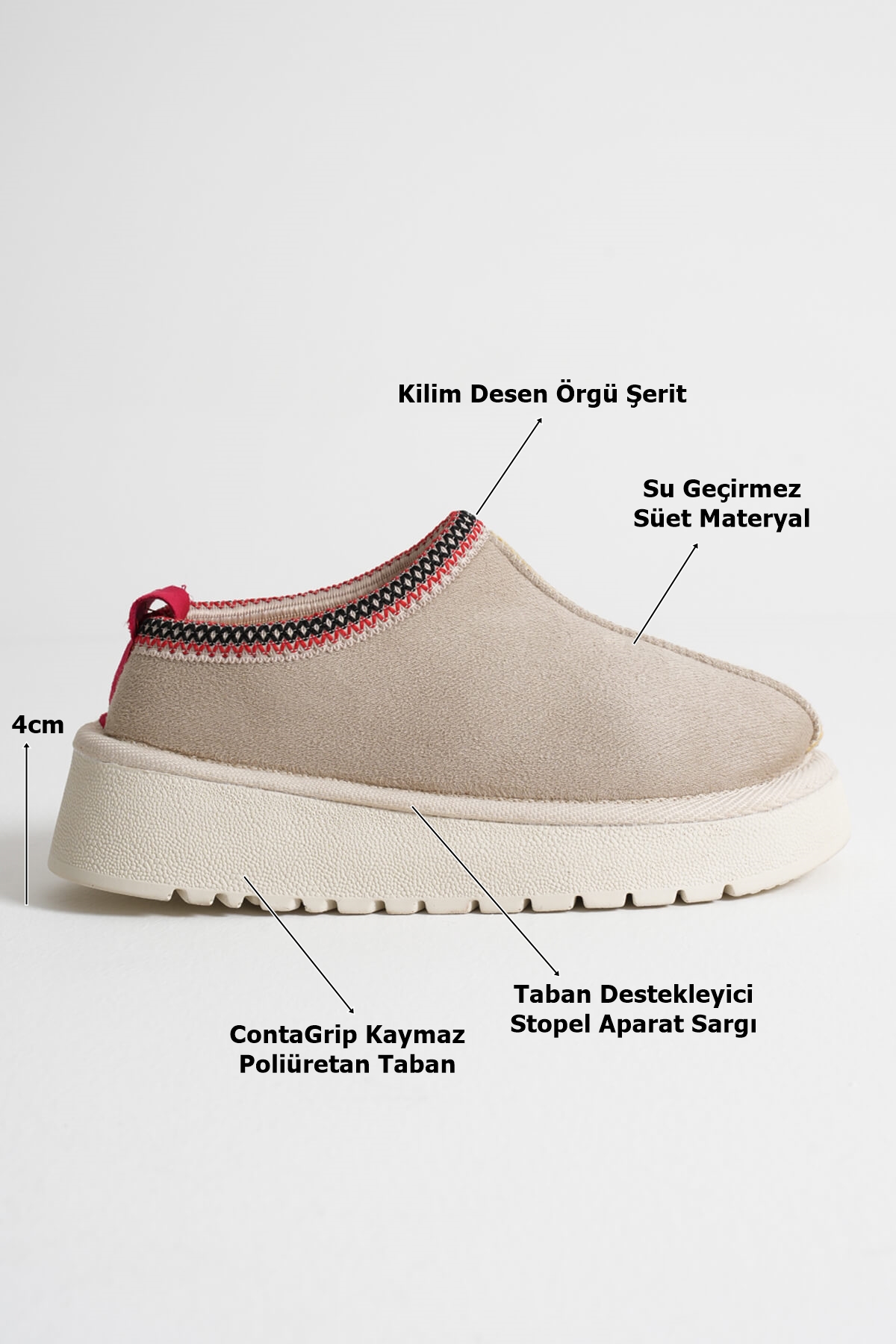 Asle Kadın Bej Kışlık Kürklü Terlik