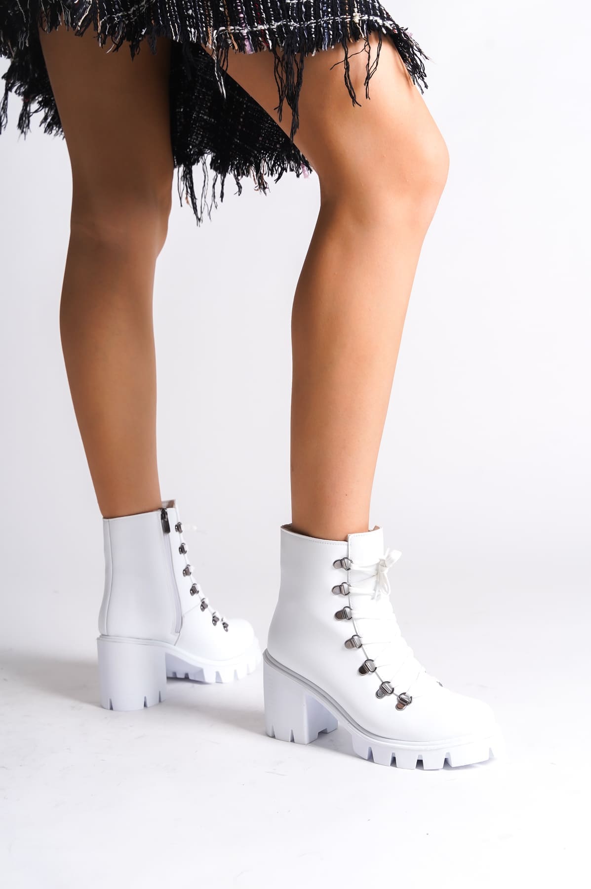 EMMA Bağcıklı Fermuarlı Ortopedik Taban Suya ve Soğuğa Dayanıklı Topuklu Cilt Kadın Bot BT Beyaz