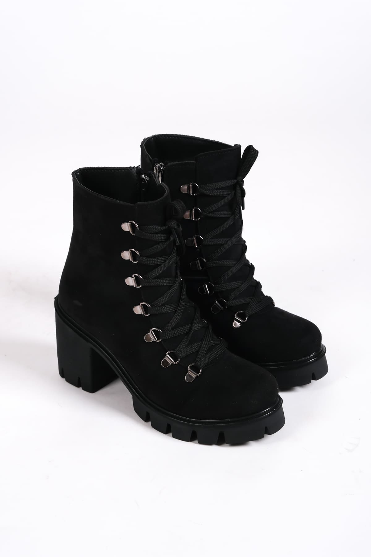 EMMA Bağcıklı Fermuarlı Ortopedik Taban Suya ve Soğuğa Dayanıklı Topuklu Süet Kadın Bot ST Siyah