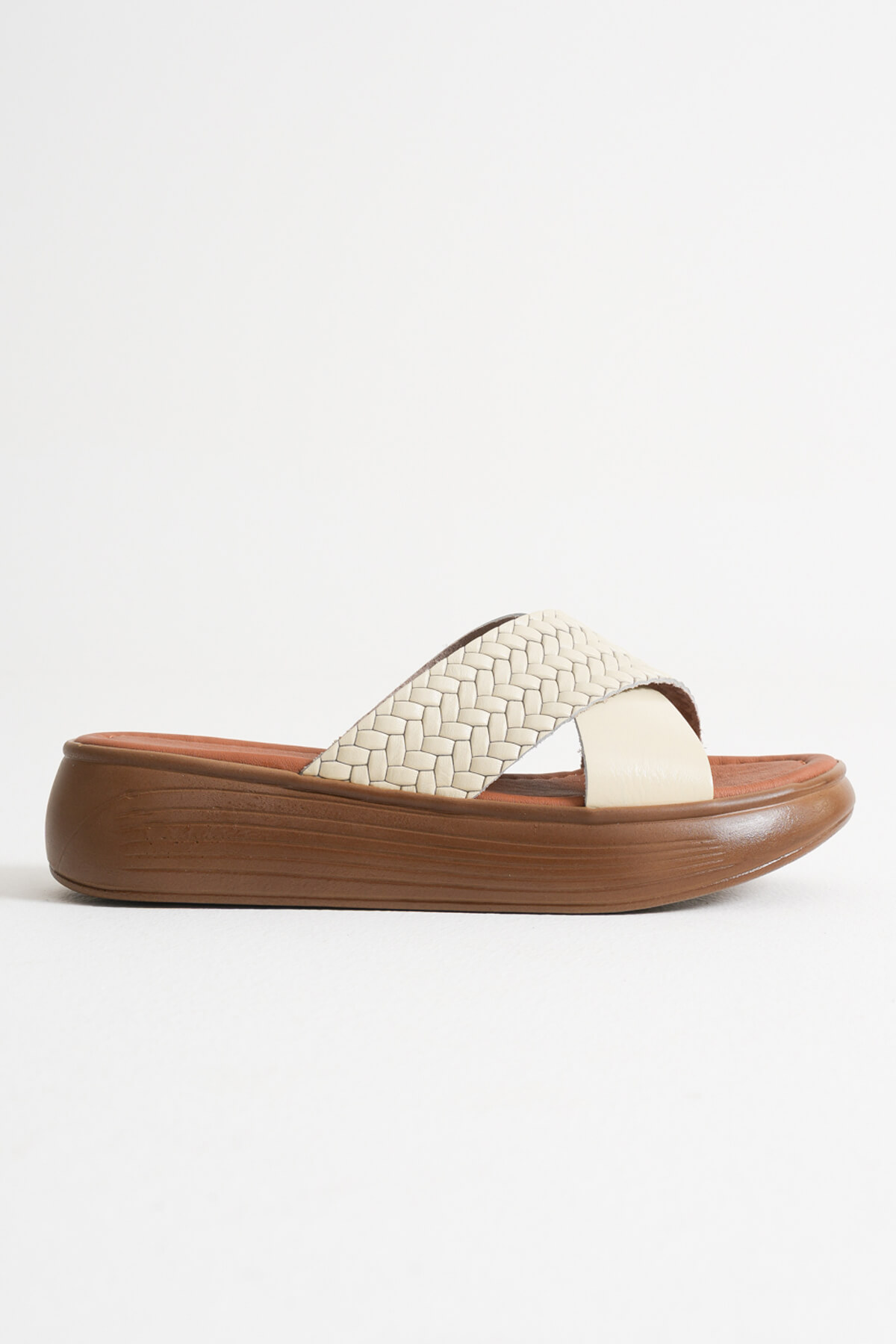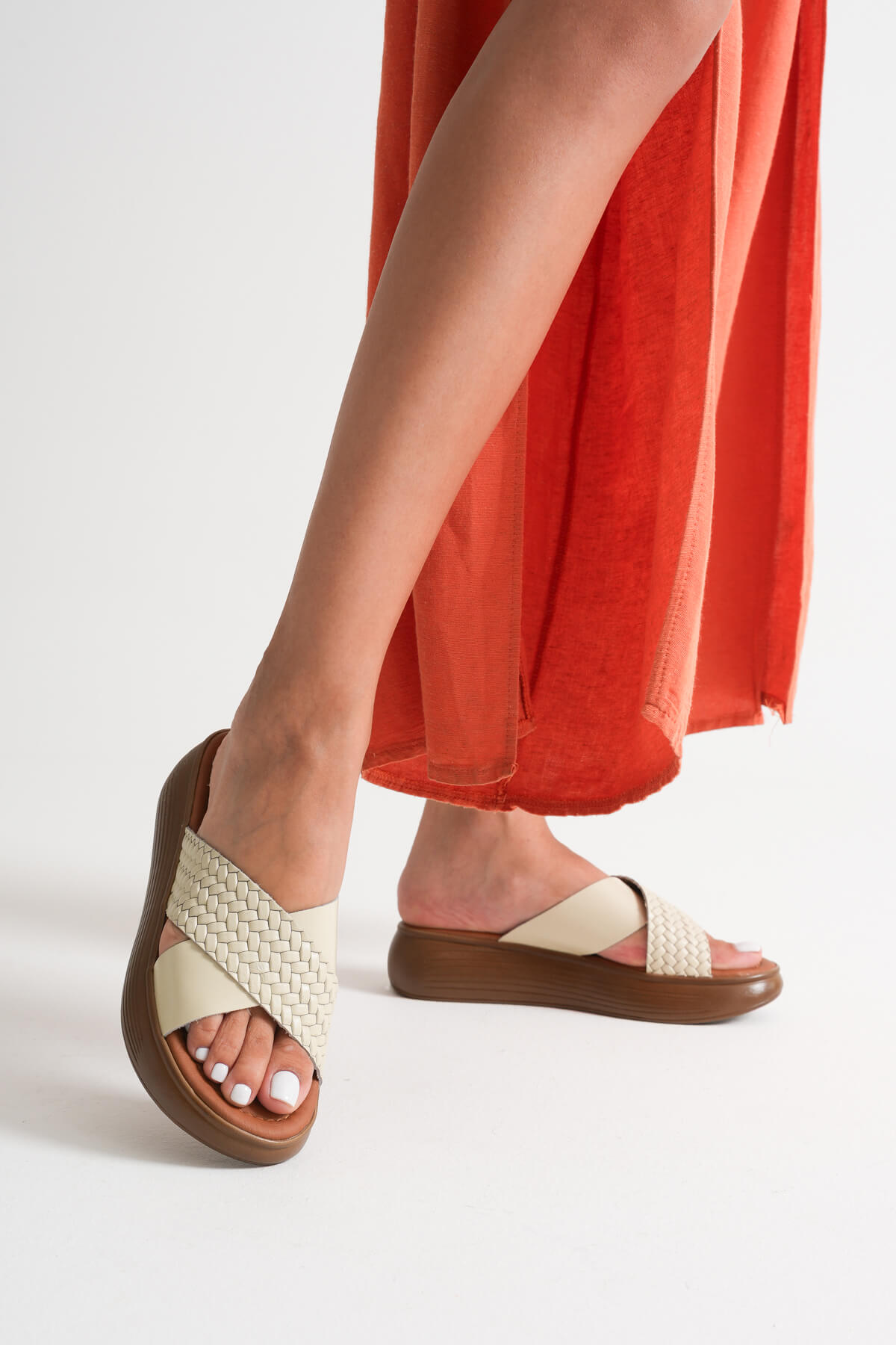 New Elena Taşlı Çapraz Bağlı Beyaz Kadın Sandalet