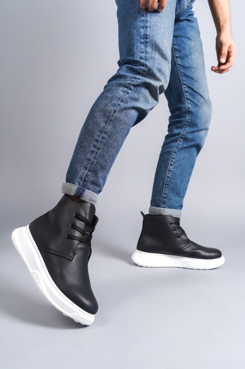 STABLE Bağcıklı Ortopedik Taban Cilt Erkek Spor Bot CST - Siyah