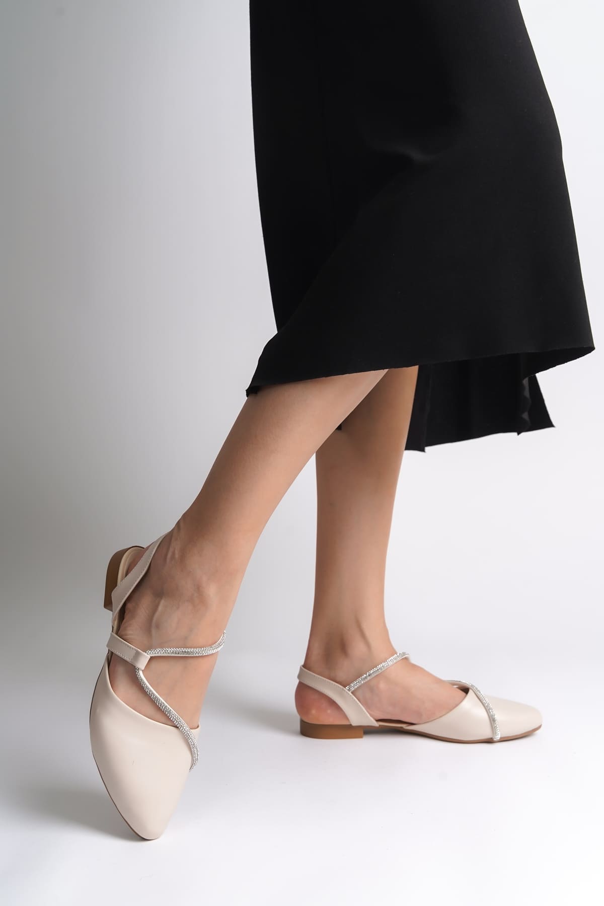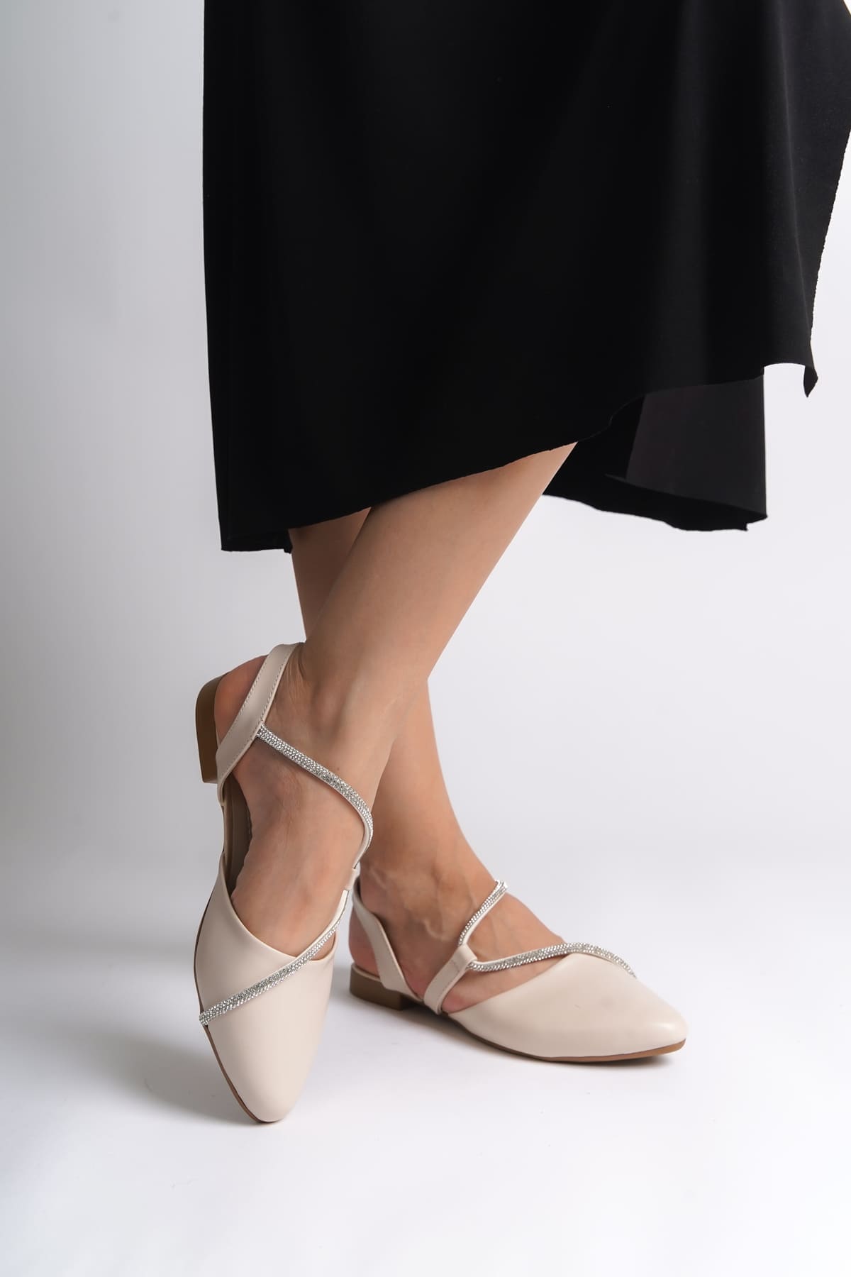 HANNAH Lastikli Ortopedik Rahat Taban Taş Detaylı Kadın Babet Ayakkabı KT Krem