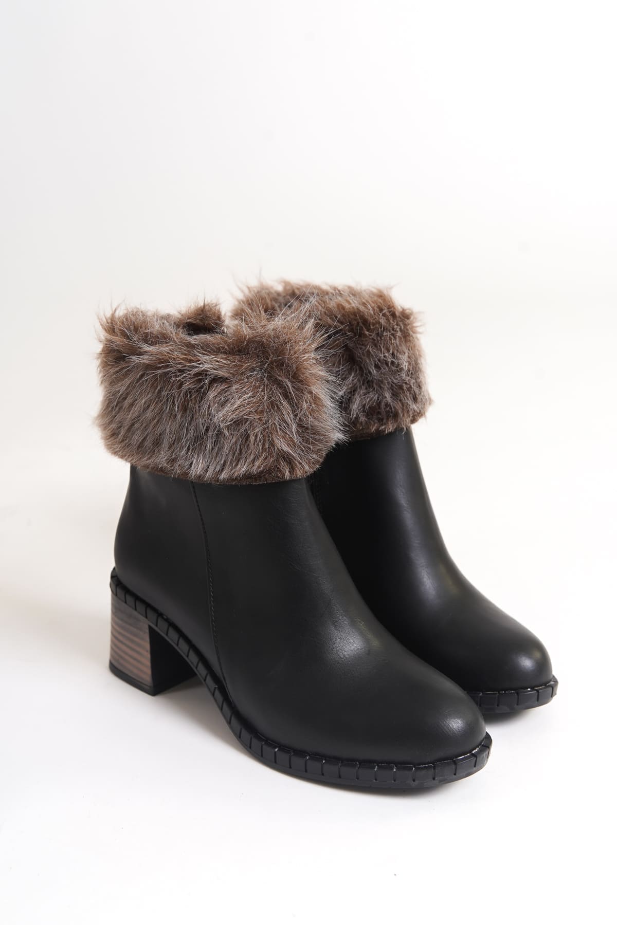 JULİA Fermuarlı Ortopedik Taban Suya ve Soğuğa Dayanıklı Tüylü Topuklu Kadın Bot ST Siyah