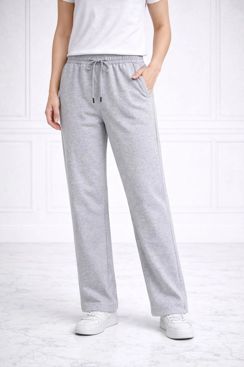 Kadın Düz Paça Beli Lastikli İpli Günlük Spor Eşofman Altı Rahat Fit - Gri