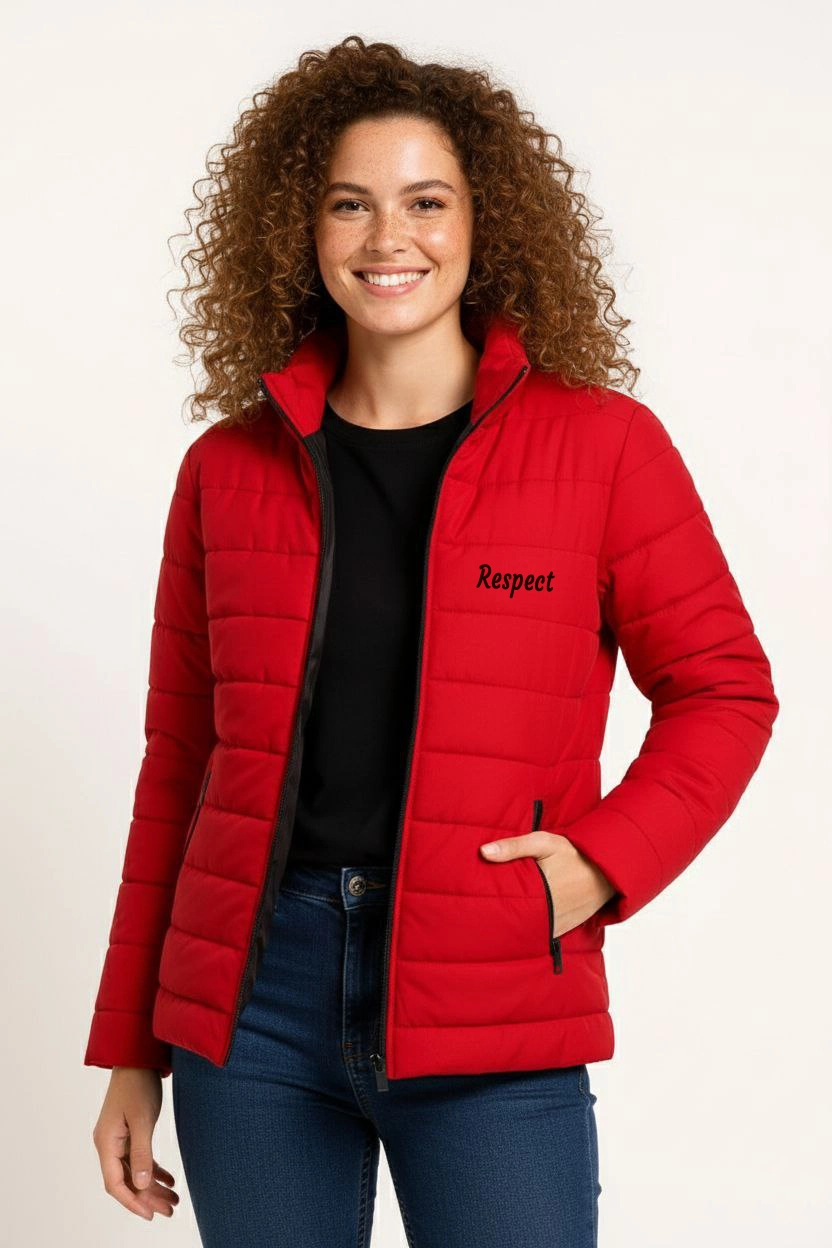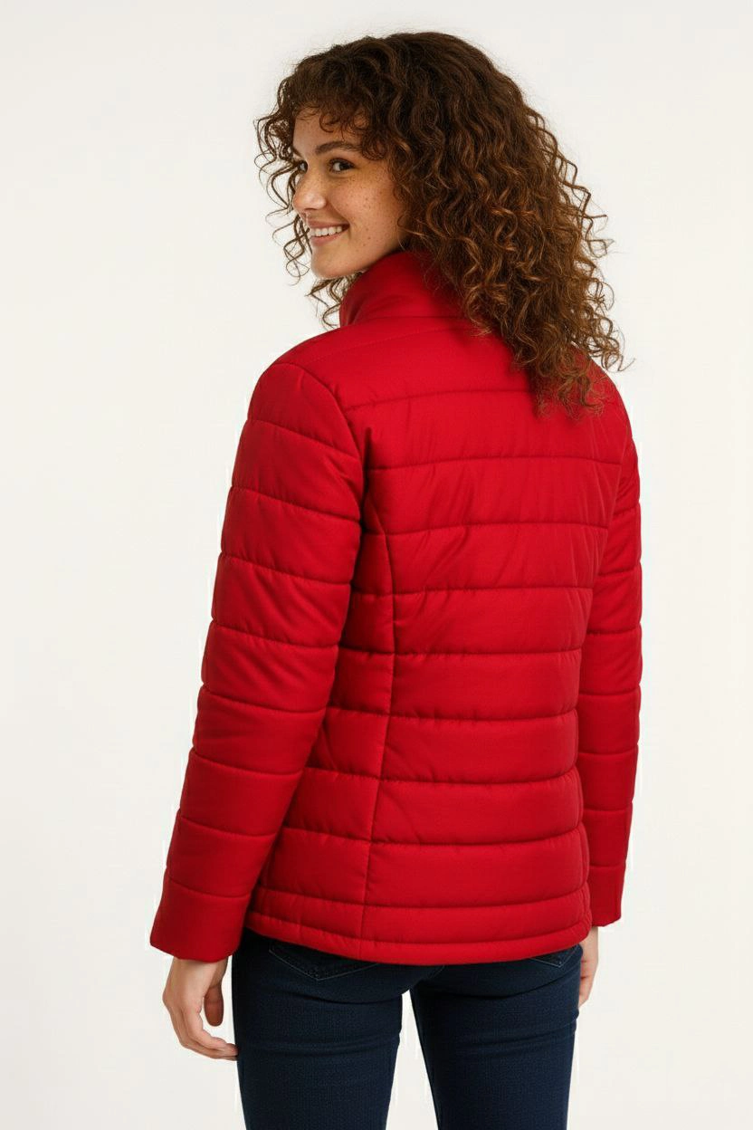 Kadın Mikro Su İtici Kapitone Baskılı Astarlı Fermuarlı Bomber Mont - Kırmızı