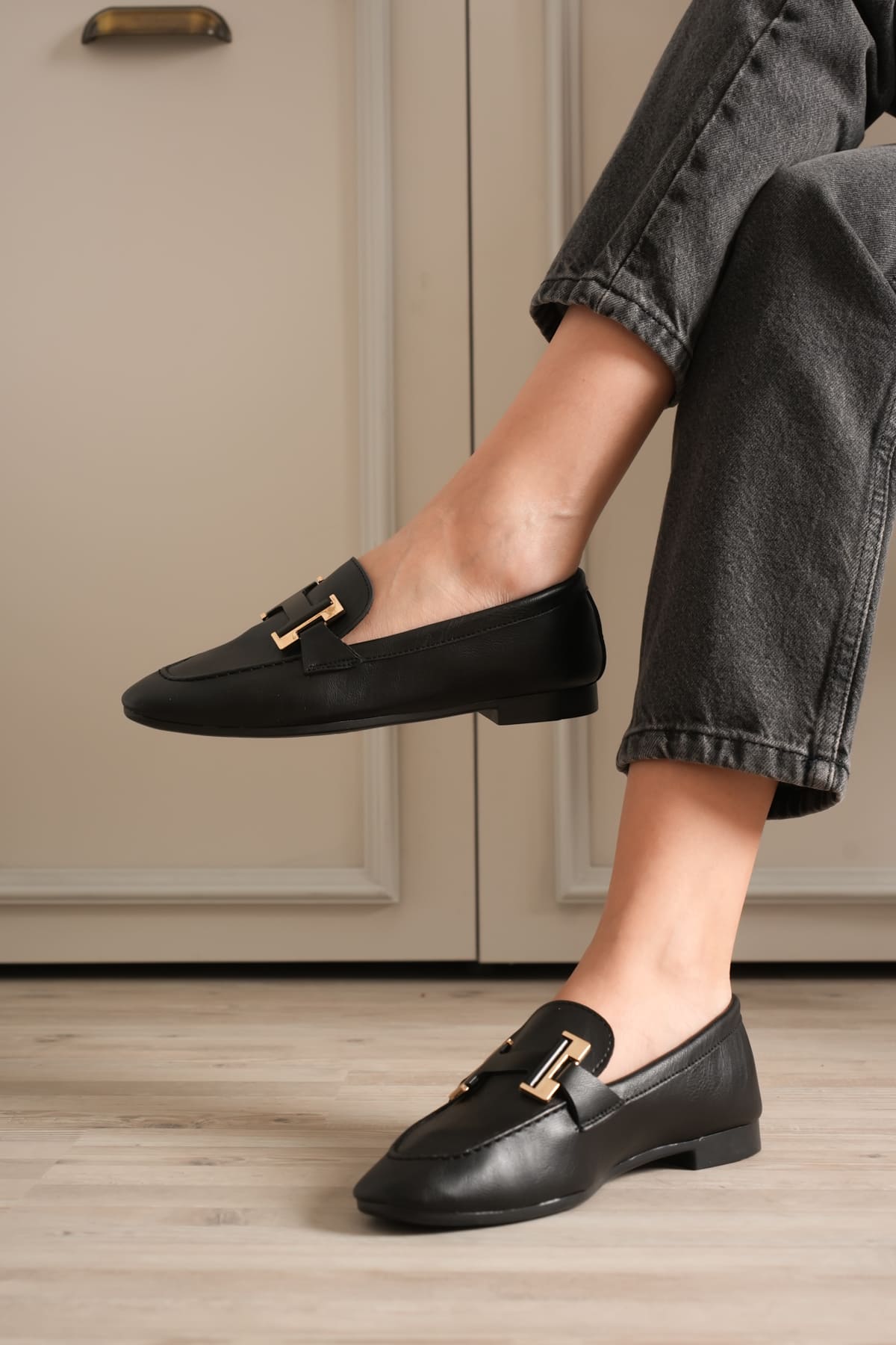 KAYLEE Bağcıksız Ortopedik Rahat Taban Toka Detaylı Kadın Babet Ayakkabı ST Siyah