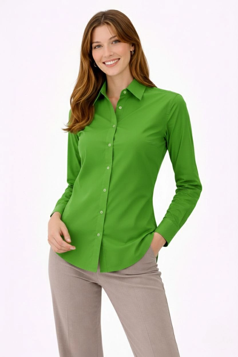Kadın Uzun Kollu Gömlek Düğmeli Klasik Yaka Günlük ve Ofis Şıklığına uygun - Yeşil