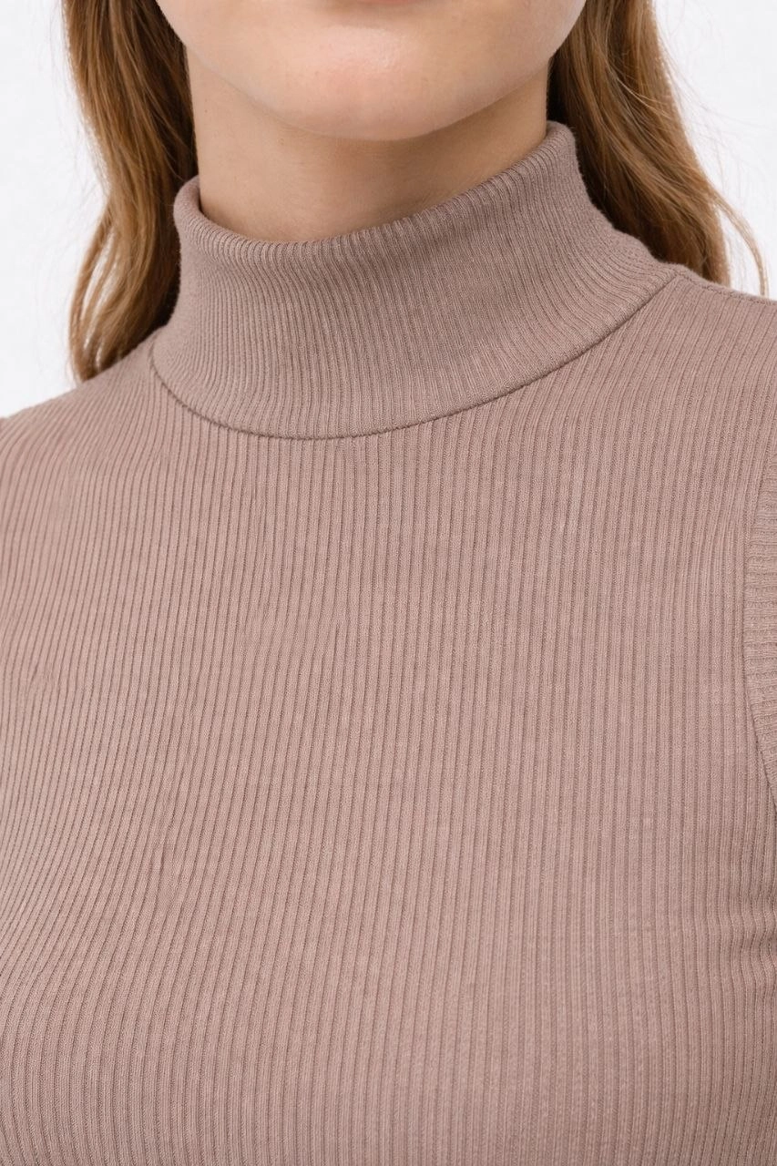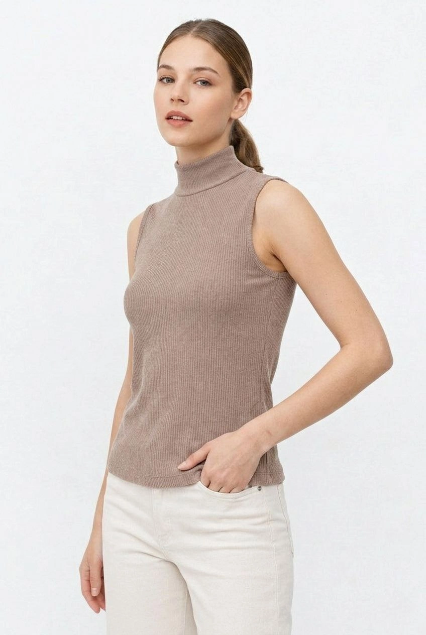 Kadın Yarım Balıkçı Yaka Fitilli Kaşkorse Atlet Basic Şık Bluz Badi - Kahverengi