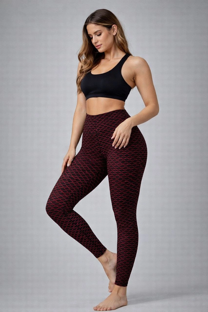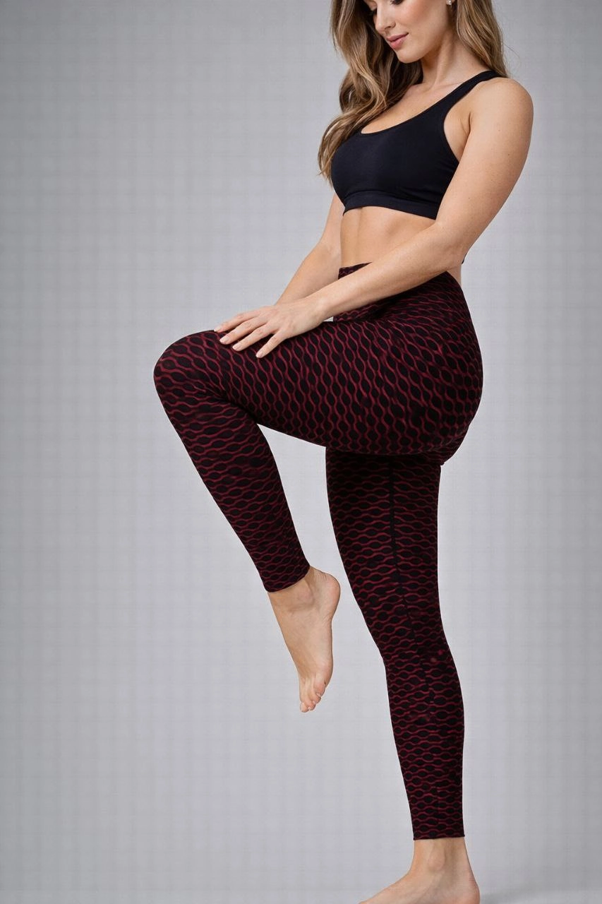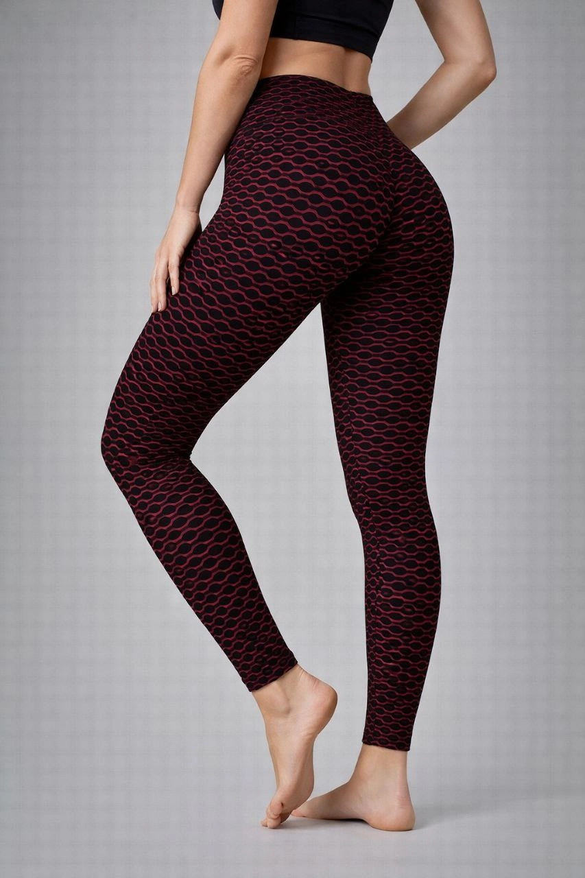 Nonofit Kadın Yüksek Bel Full Extra Toparlayıcı Likralı Ön Arka ve Bilek Desenli Tayt - Bordo