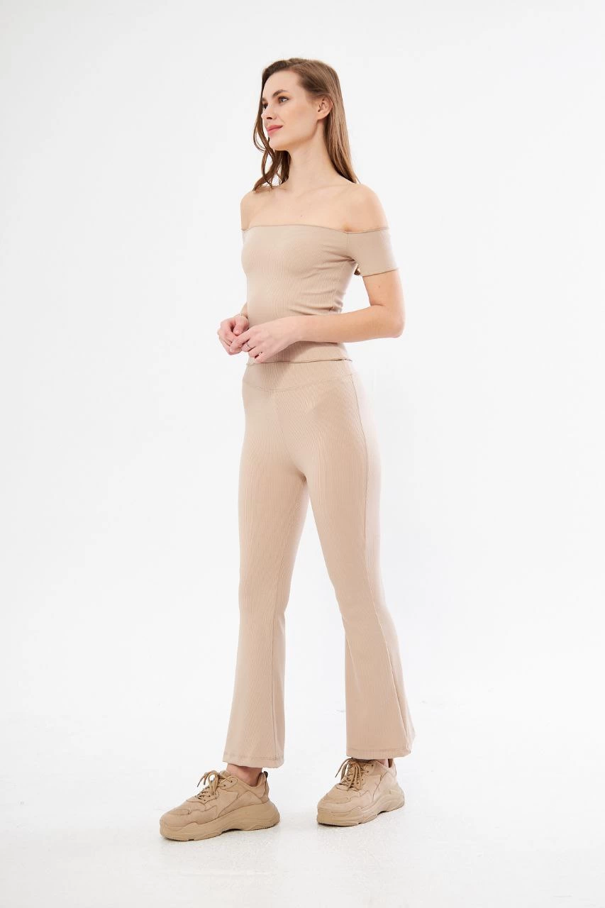 Kadın Yüksel Bel Fitilli İspanyol Paça Tayt - Kahve