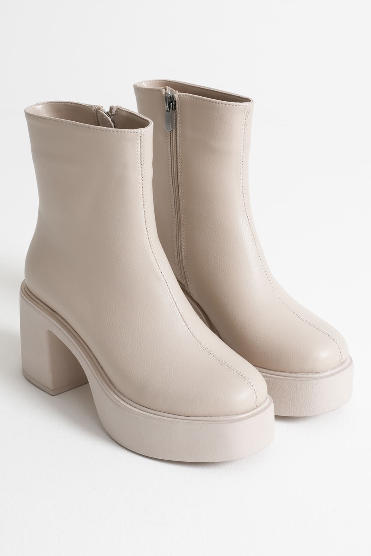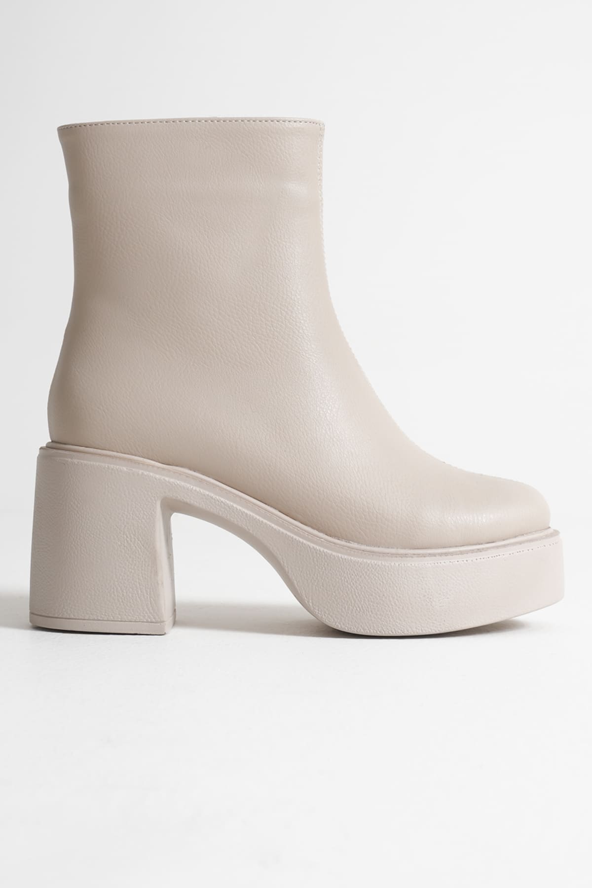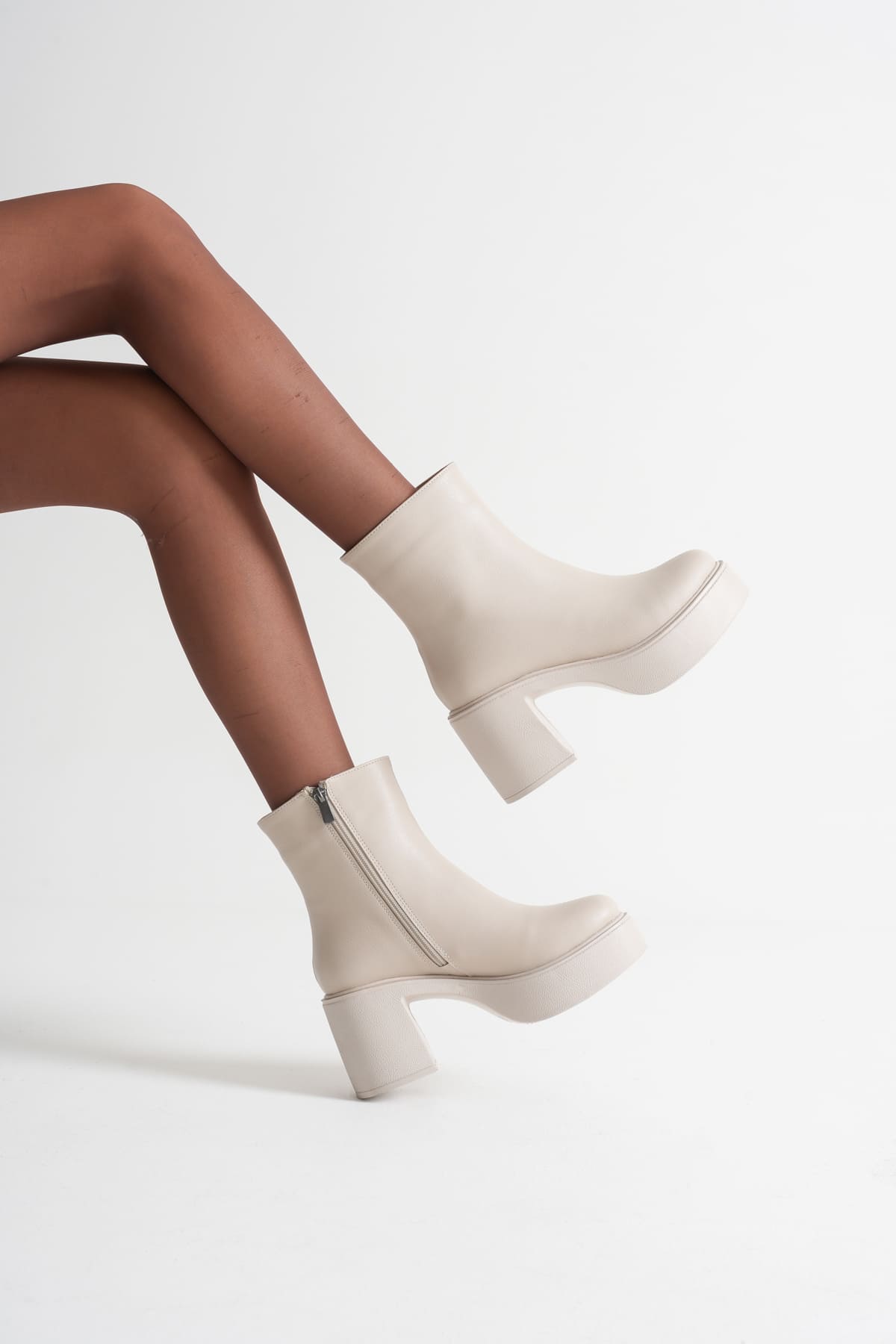 Aroif Özel Tasarım Kadın Kışlık Kalın Tabanlı Bej Bot