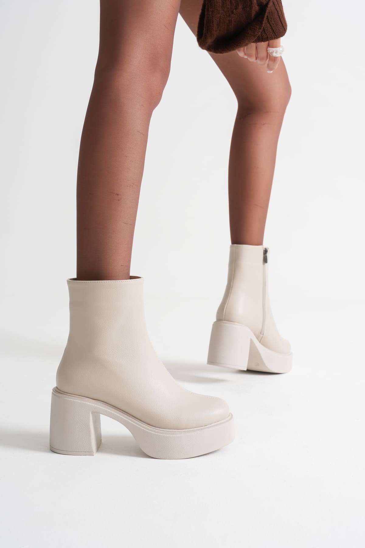 Epolenep Kadın Kışlık Bej Kalın Topuklu Bot
