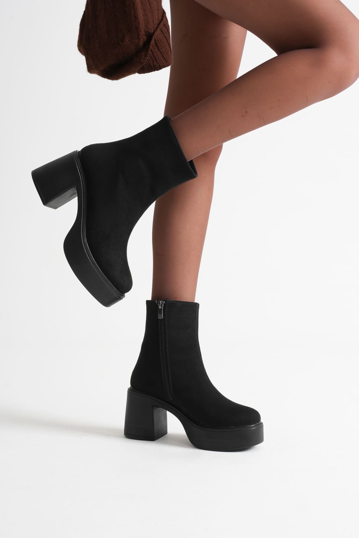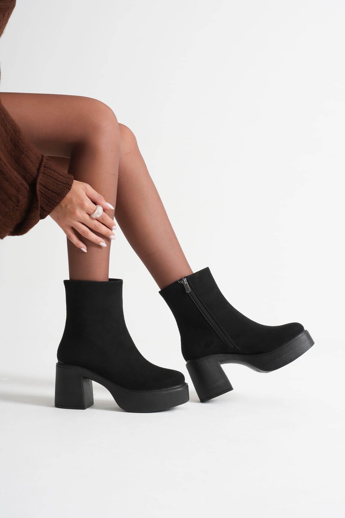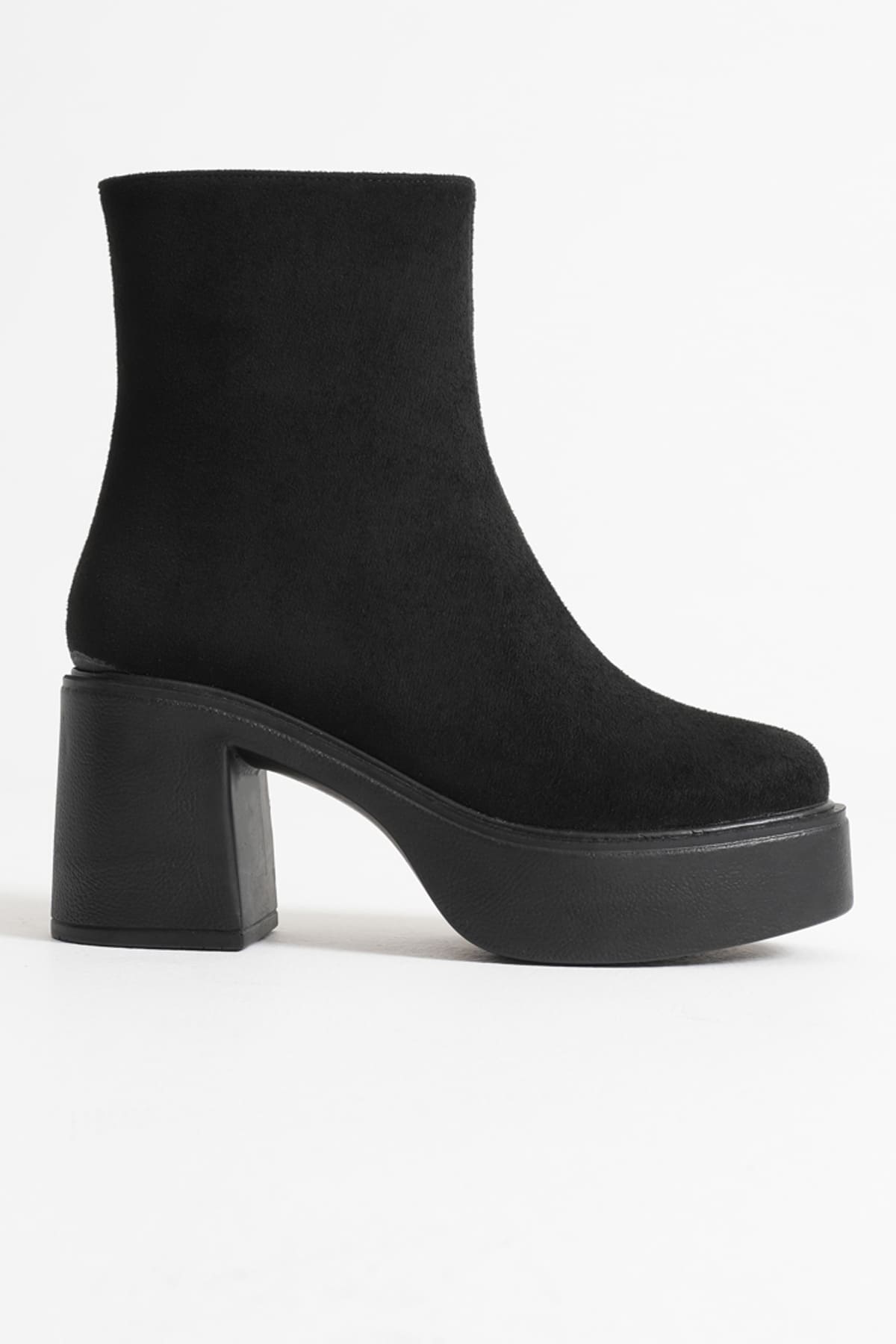 New Margaret Siyah Süet Kısa Topuklu Kadın Bot