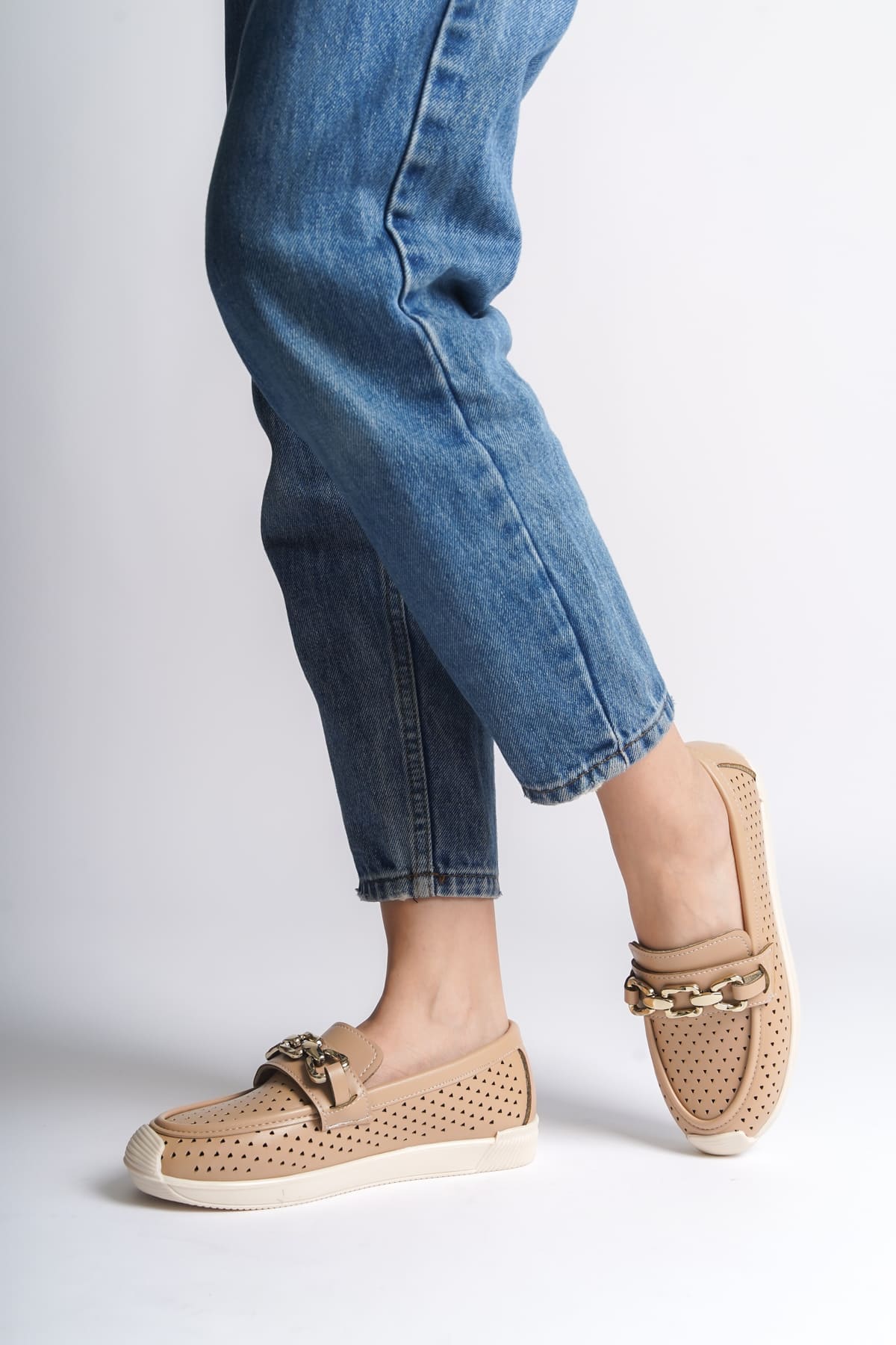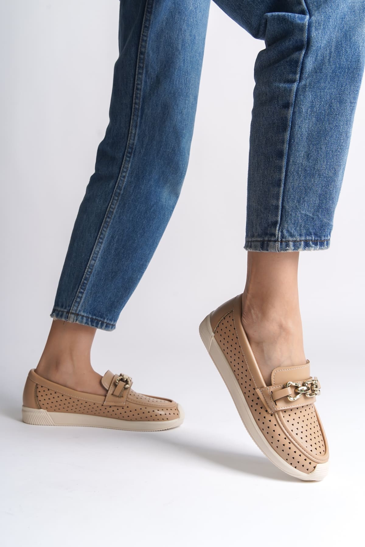 LAYLA Bağcıksız Ortopedik Rahat Taban Kalp Desenli Kadın Babet Ayakkabı CKT - Ten