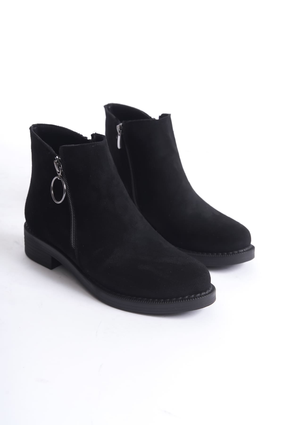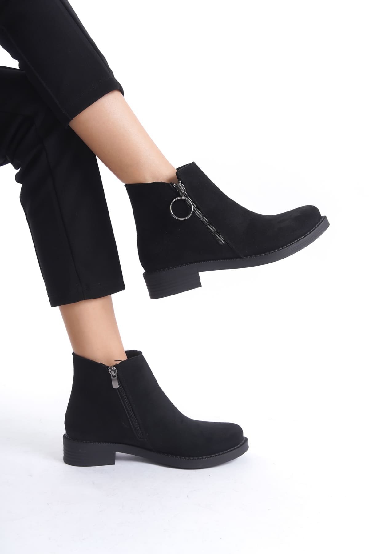 MARGARET Fermuarlı Ortopedik Taban Suya ve Soğuğa Dayanıklı Topuklu Süet Kadın Bot ST Siyah