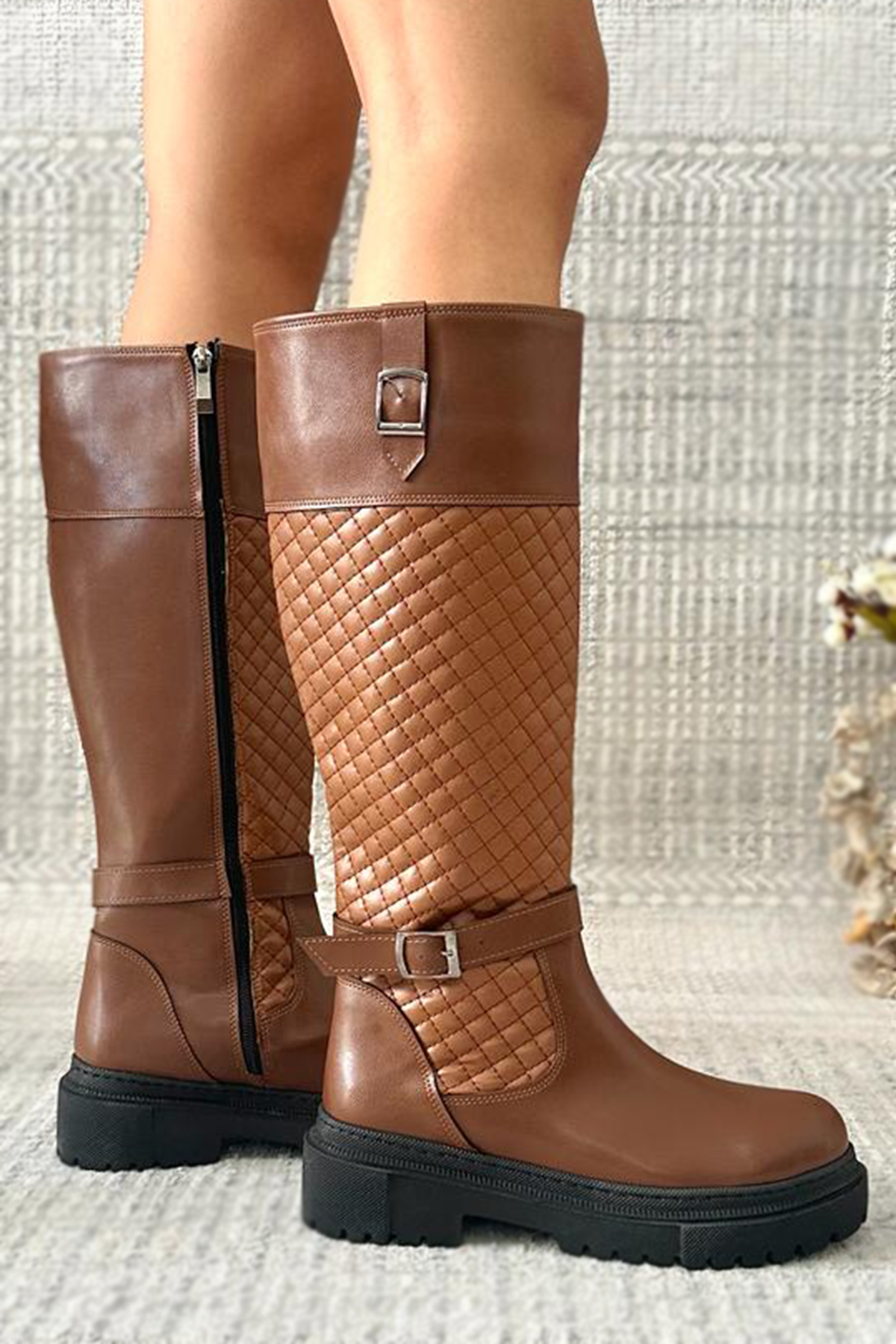 Mengiz Kapitone Taba Kadın Deri Çizme