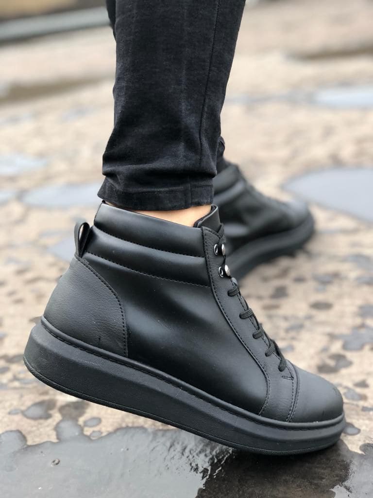 STABLE Bağcıklı Ortopedik Taban Cilt Erkek Spor Bot CBT - Siyah