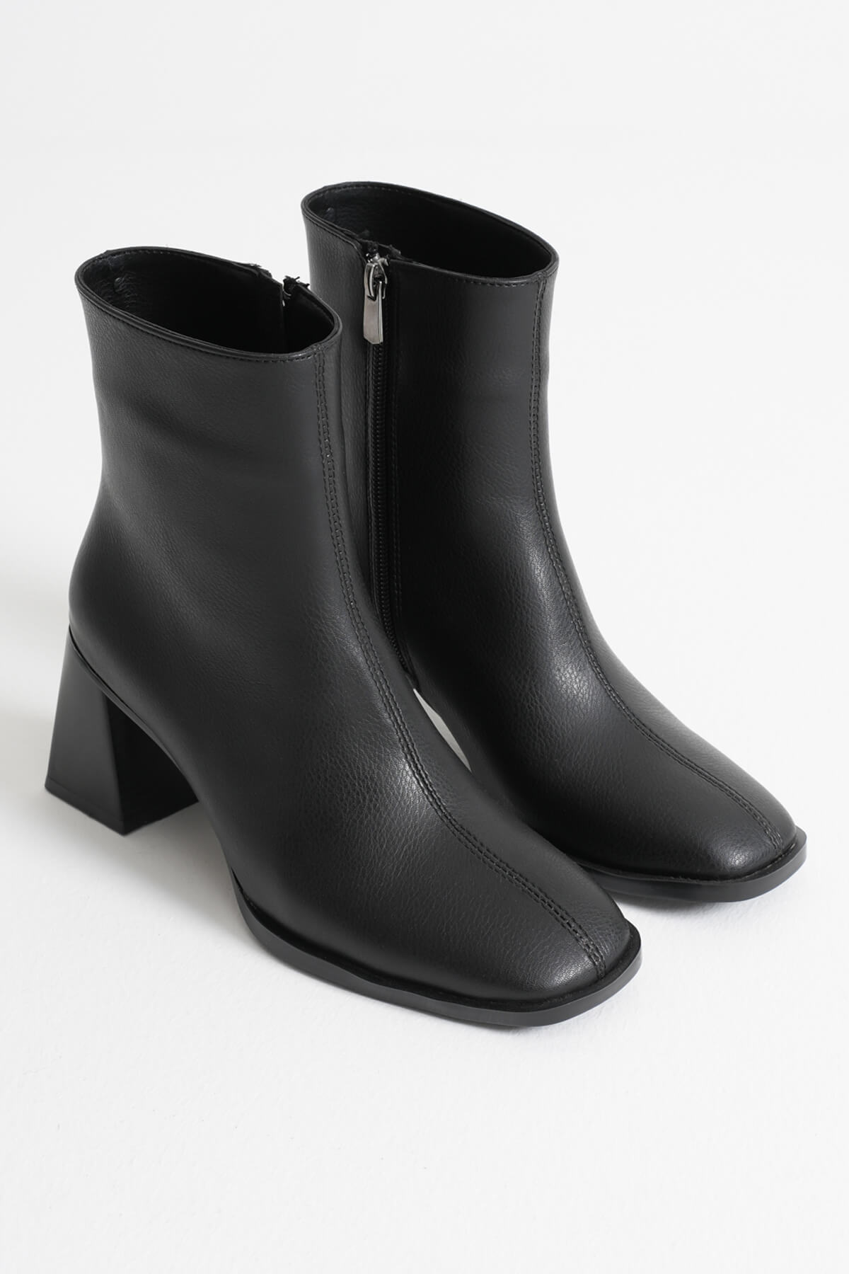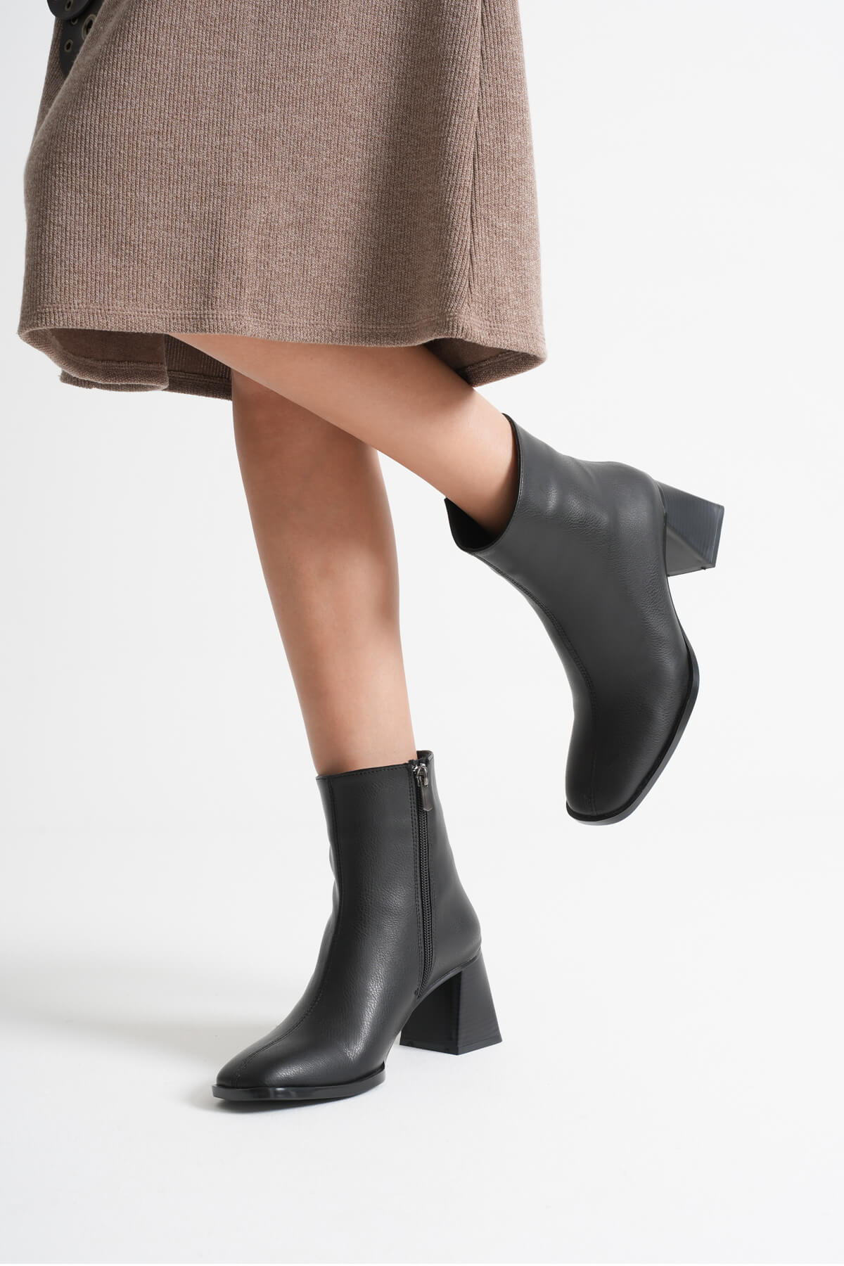 LIA Fermuarlı Ortopedik Taban Taşlı Topuklu Kadın Bot CST - Siyah