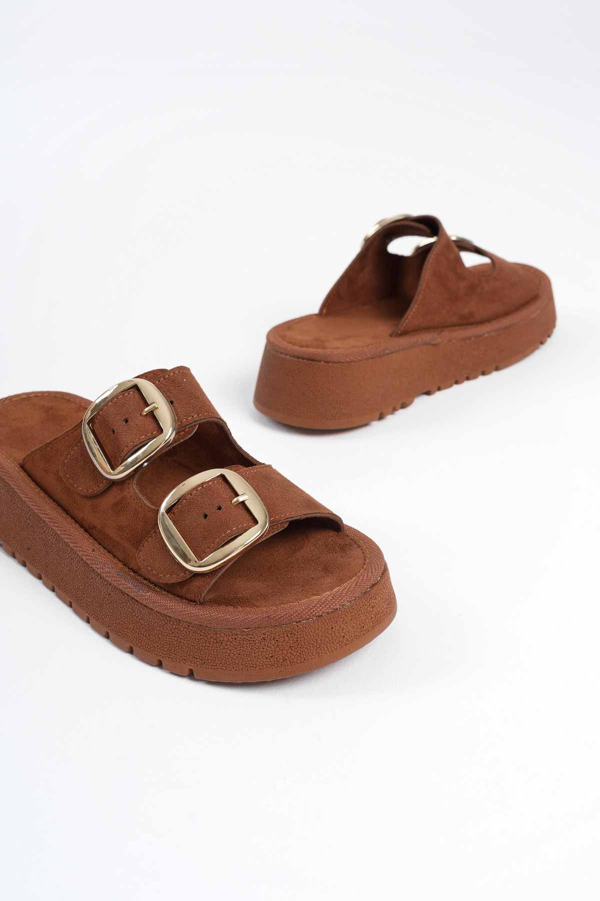 Orwell Acı Kahve Altın Detaylı Hakiki Deri Sandalet
