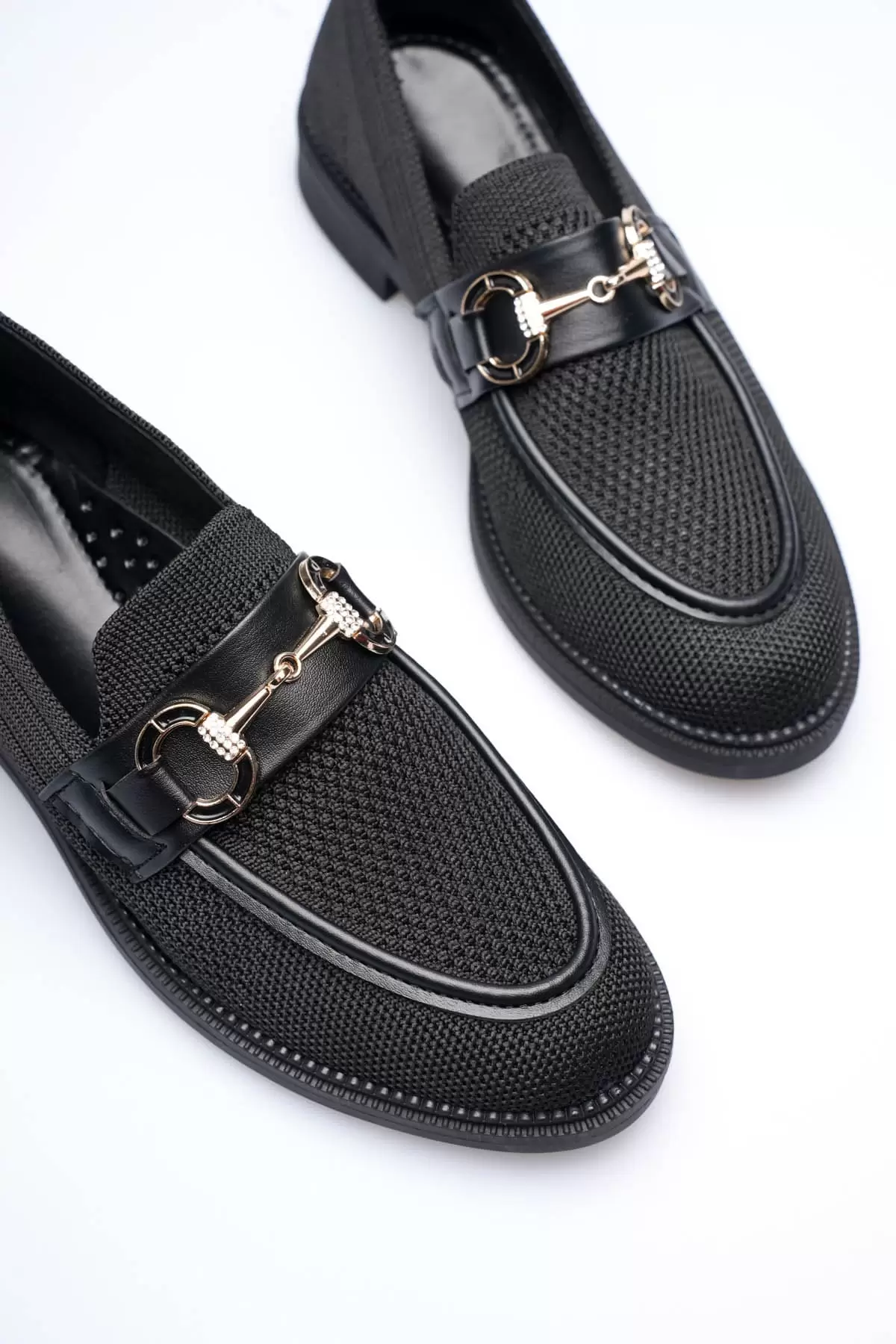 Siyah Kadın Loafer Metal Tokalı Rahat Günlük Ayakkabı TR30MS02A