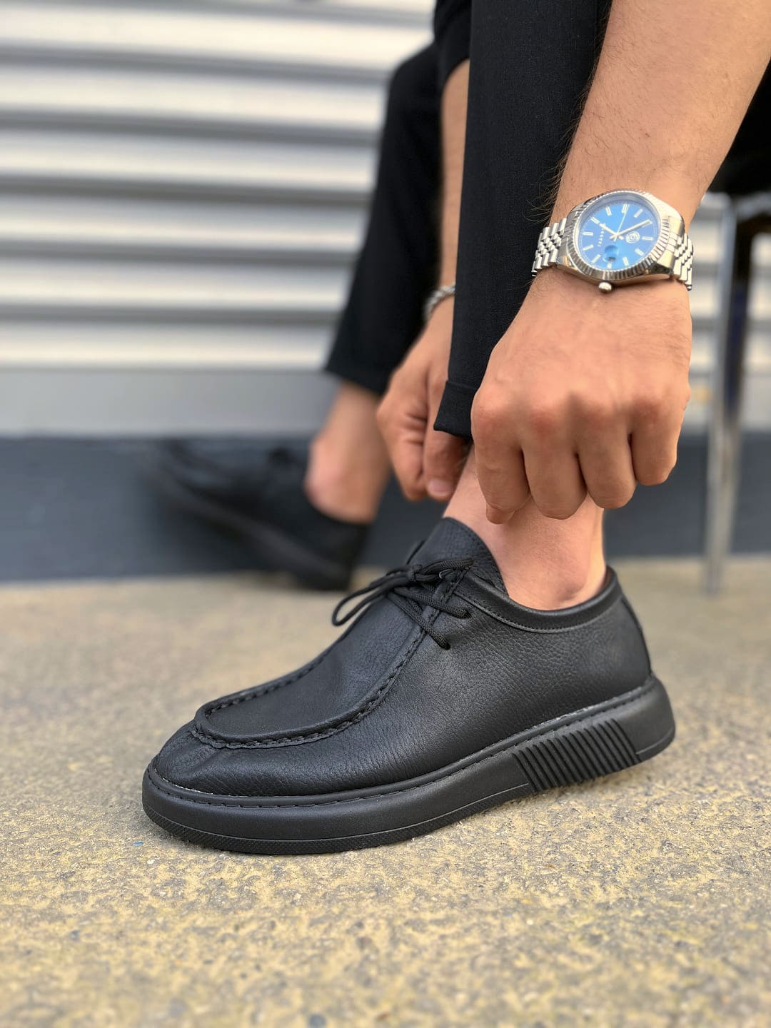 JYx03 Luxor Bağcıklı Cilt Erkek Günlük Spor Klasik Ayakkabı CST - Siyah