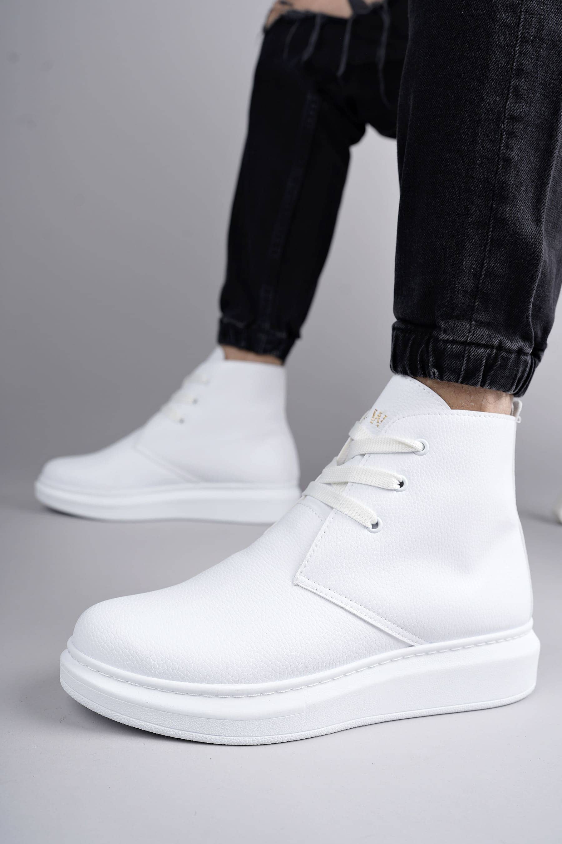 Atto Bağcıklı Ortopedik Taban Cilt Erkek Spor Bot CBT - Beyaz