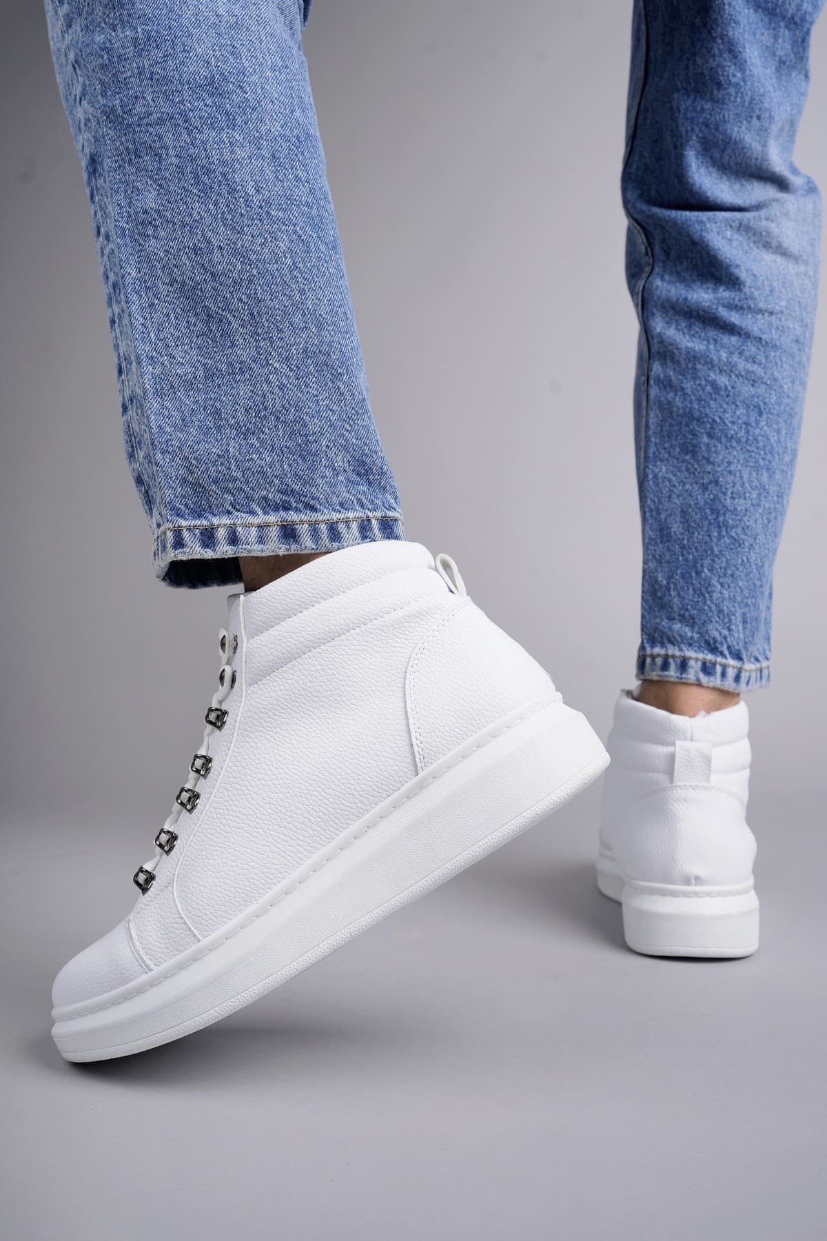 Atto Bağcıklı Ortopedik Taban Cilt Erkek Spor Bot CBT - Beyaz