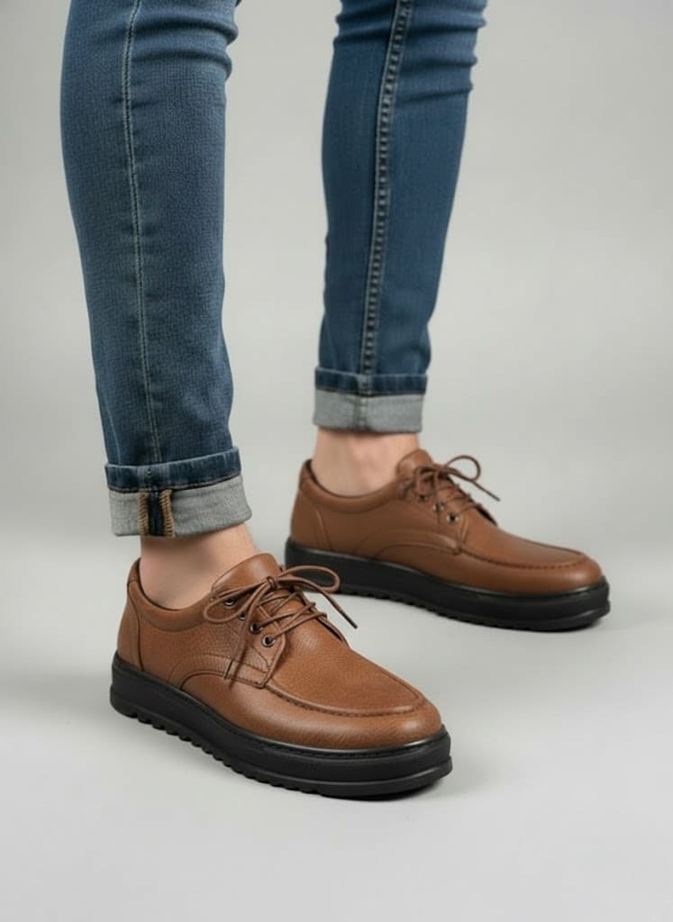 Stra Bağcıklı Cilt Erkek Günlük Spor Klasik Ayakkabı CST - Taba