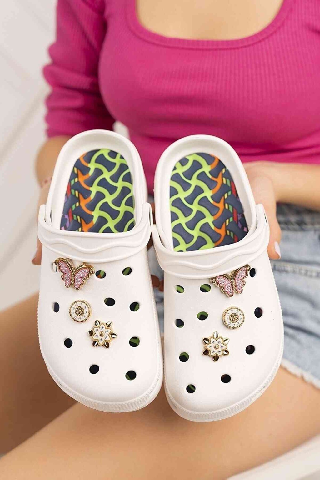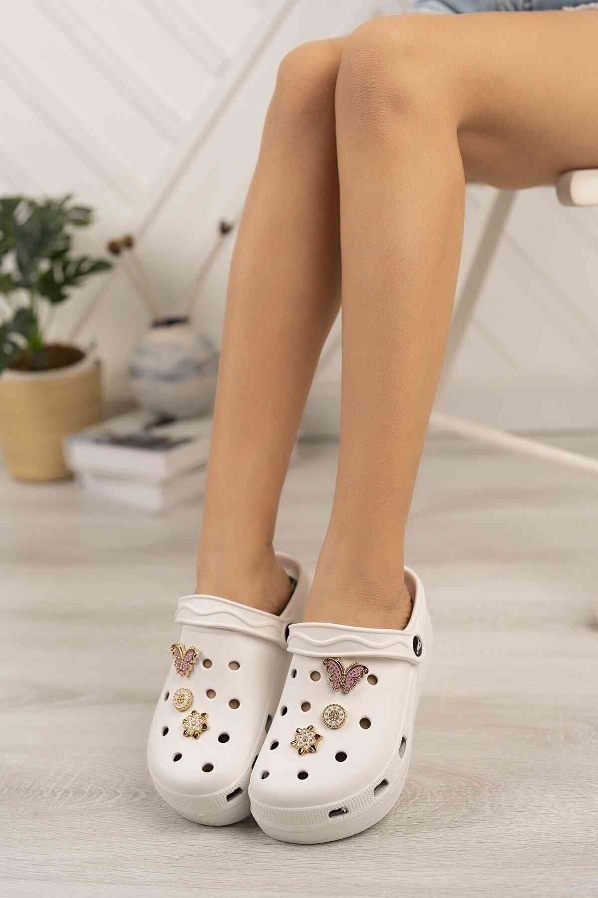 Taş Tokalı Yumuşak Tabanlı Kadın Terlik Beyaz